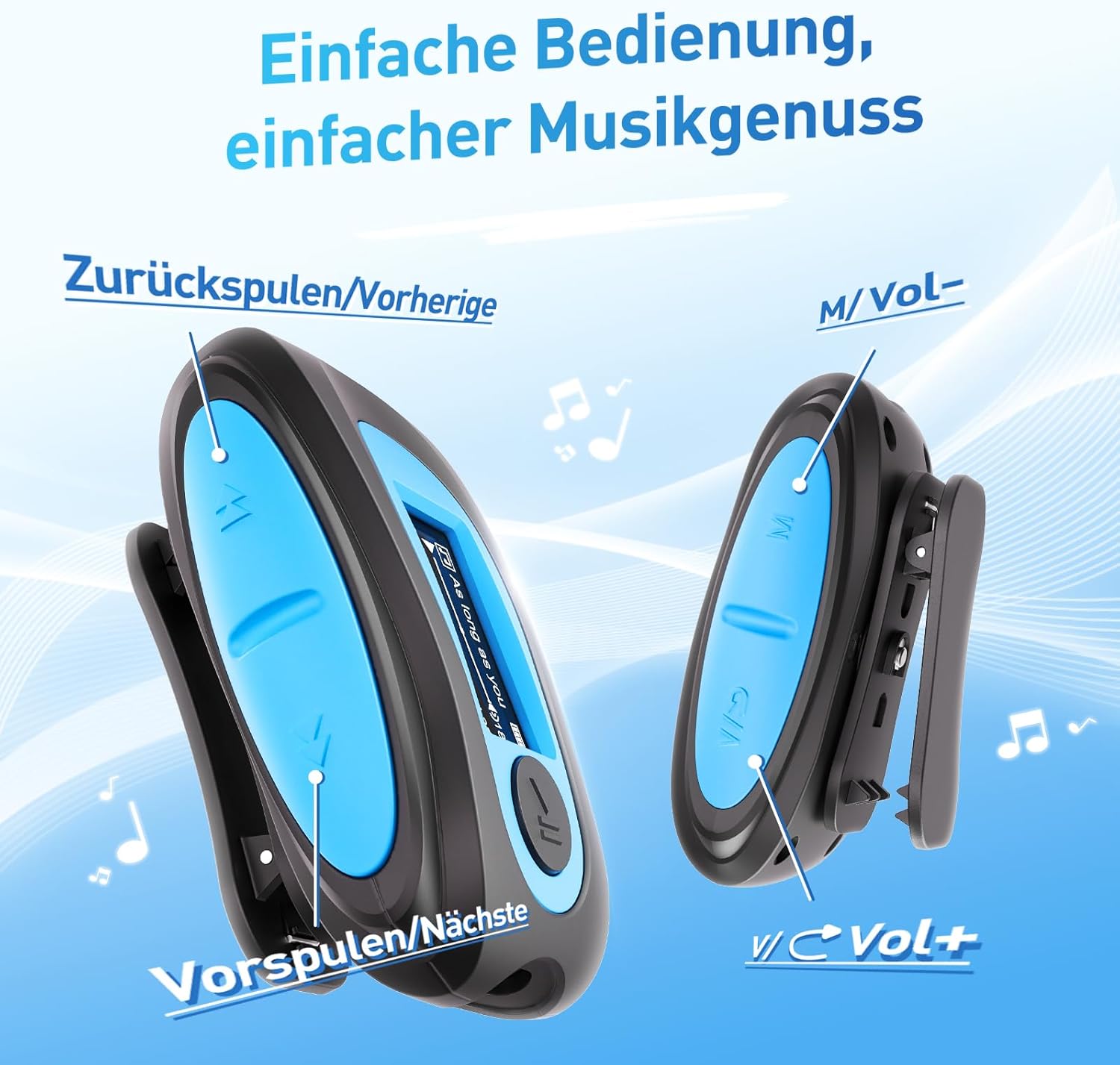 Bluetooth Mini Clip MP3 плейър, преносим спортен музикален плейър с FM поддръжка, 64GB Micro SD карта памет