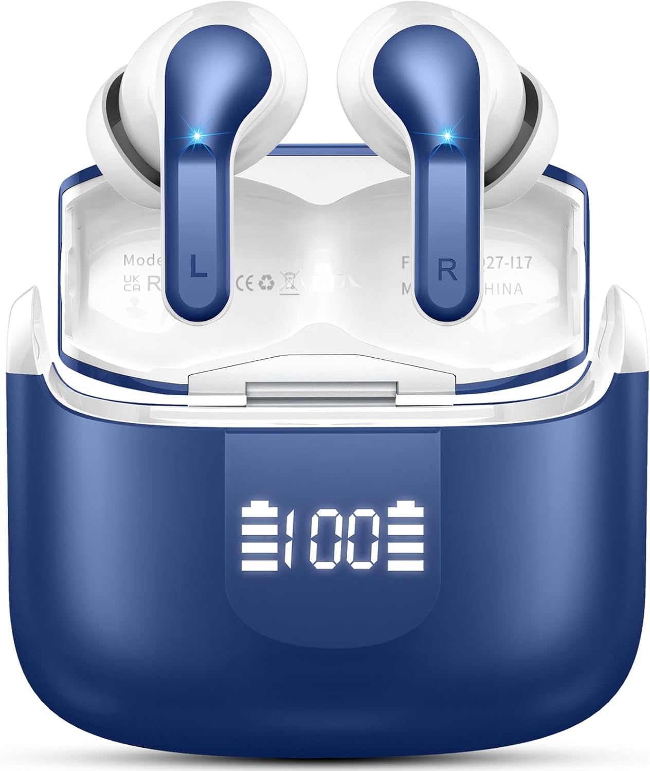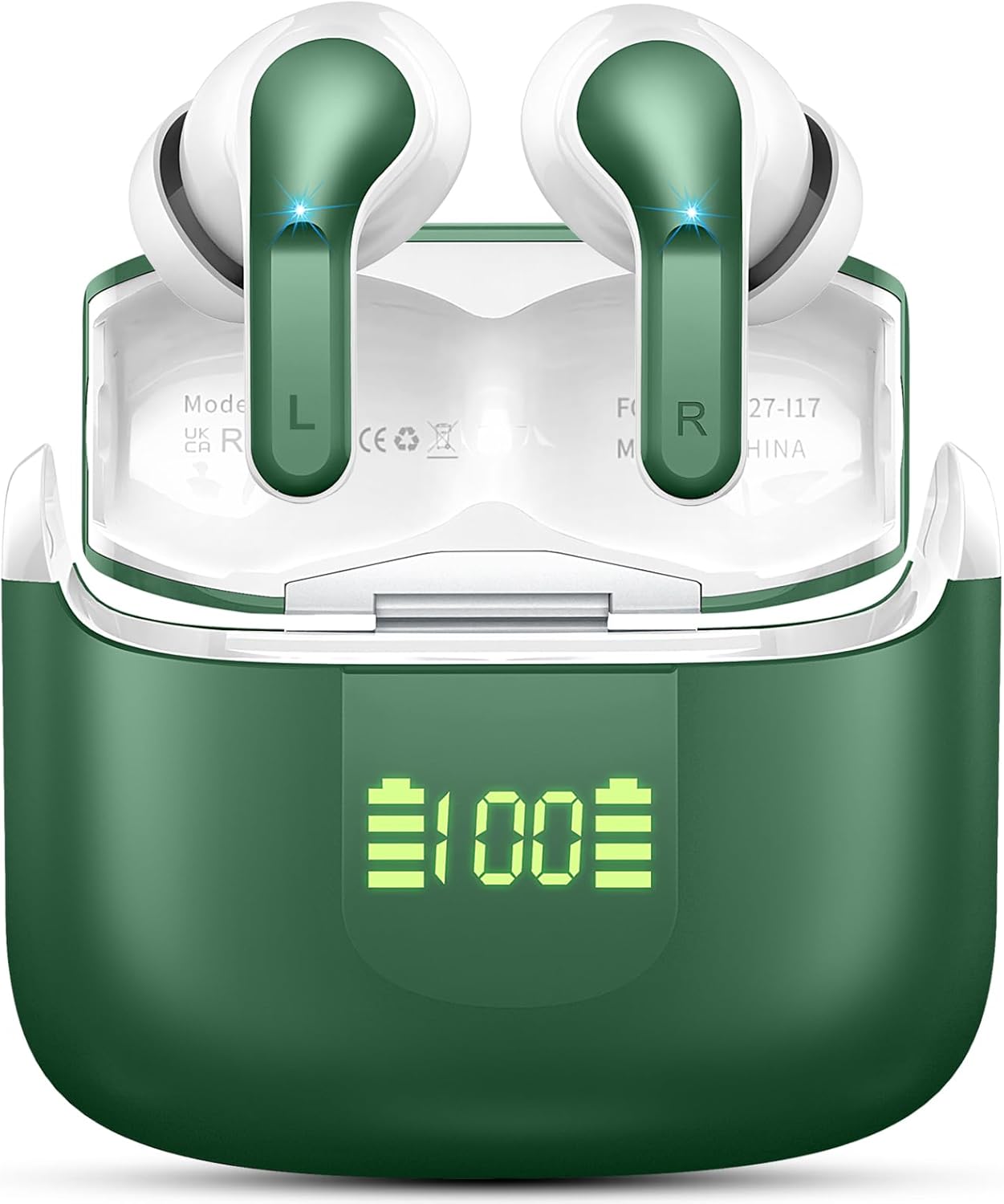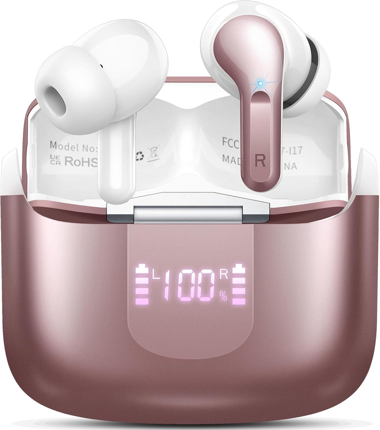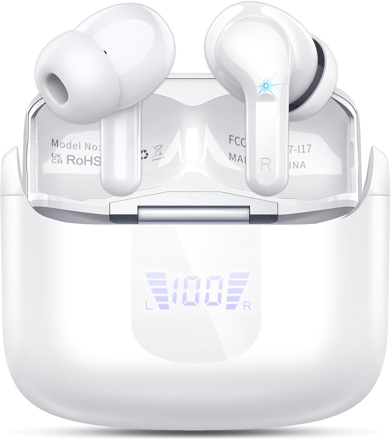 Bluetooth слушалки, 2025 3D стерео безжични Bluetooth 5.4 слушалки, 40 часа дълбок бас, безжични слушалки-капсули, 4 ENC микрофон с шумопотискане, USB-C слушалки за поставяне в ушите, IP-X7 водоустойчиви слушалки за спорт и фитнес