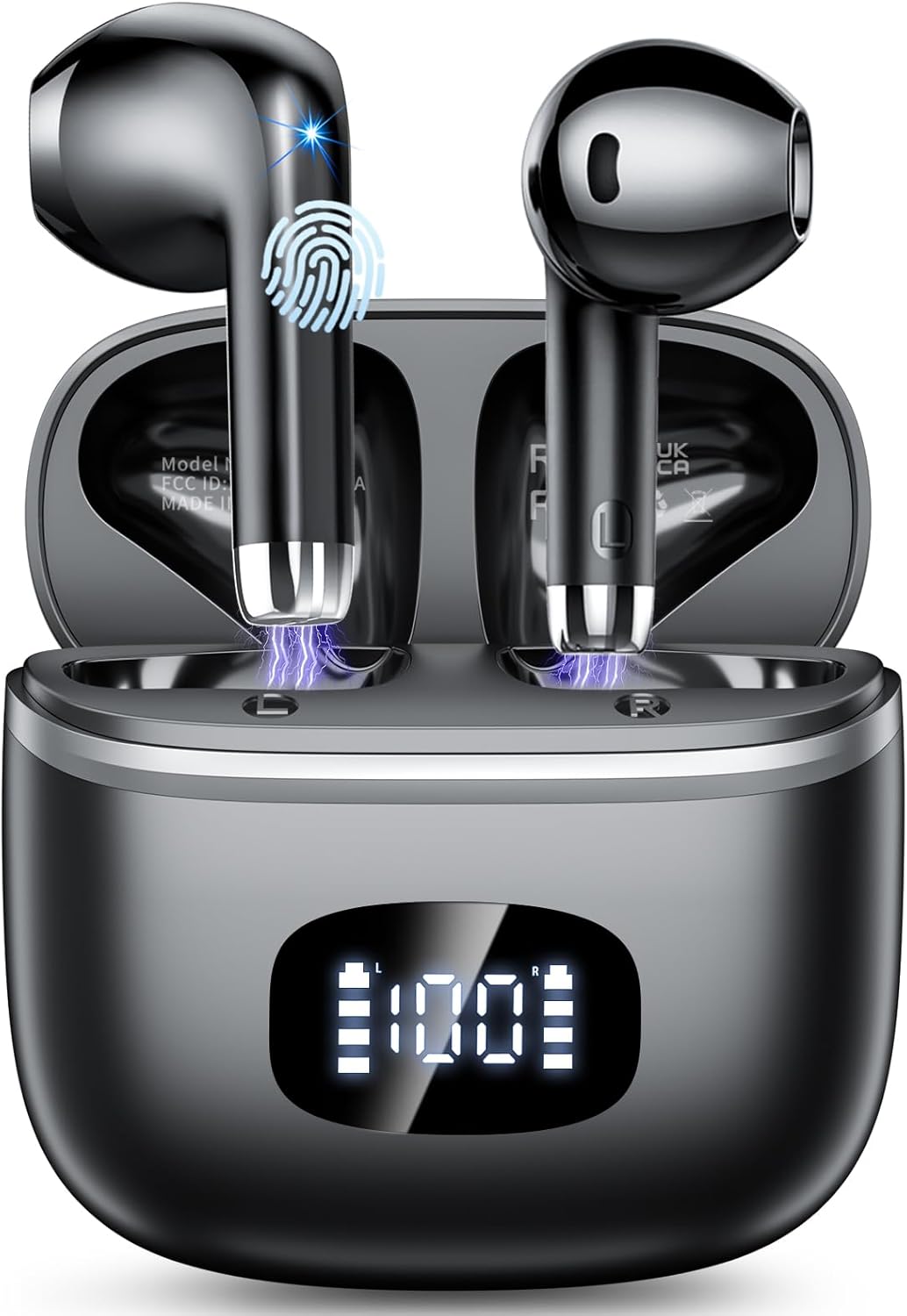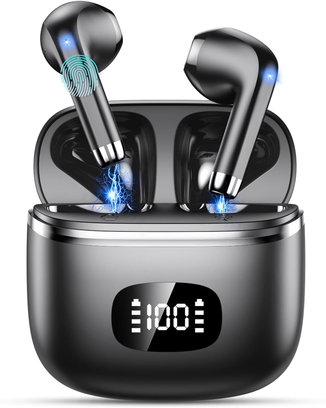Bluetooth слушалки, Безжични Bluetooth 5.3 слушалки с 4 ENC микрофон за шумопотискане, Безжична HiFi стерео система, LED дисплей, 40 часа време за възпроизвеждане, USB-C, Слушалки за в ушите за работа, игри, спорт
