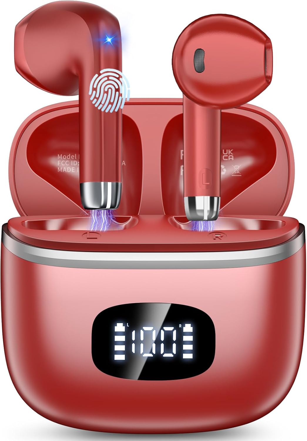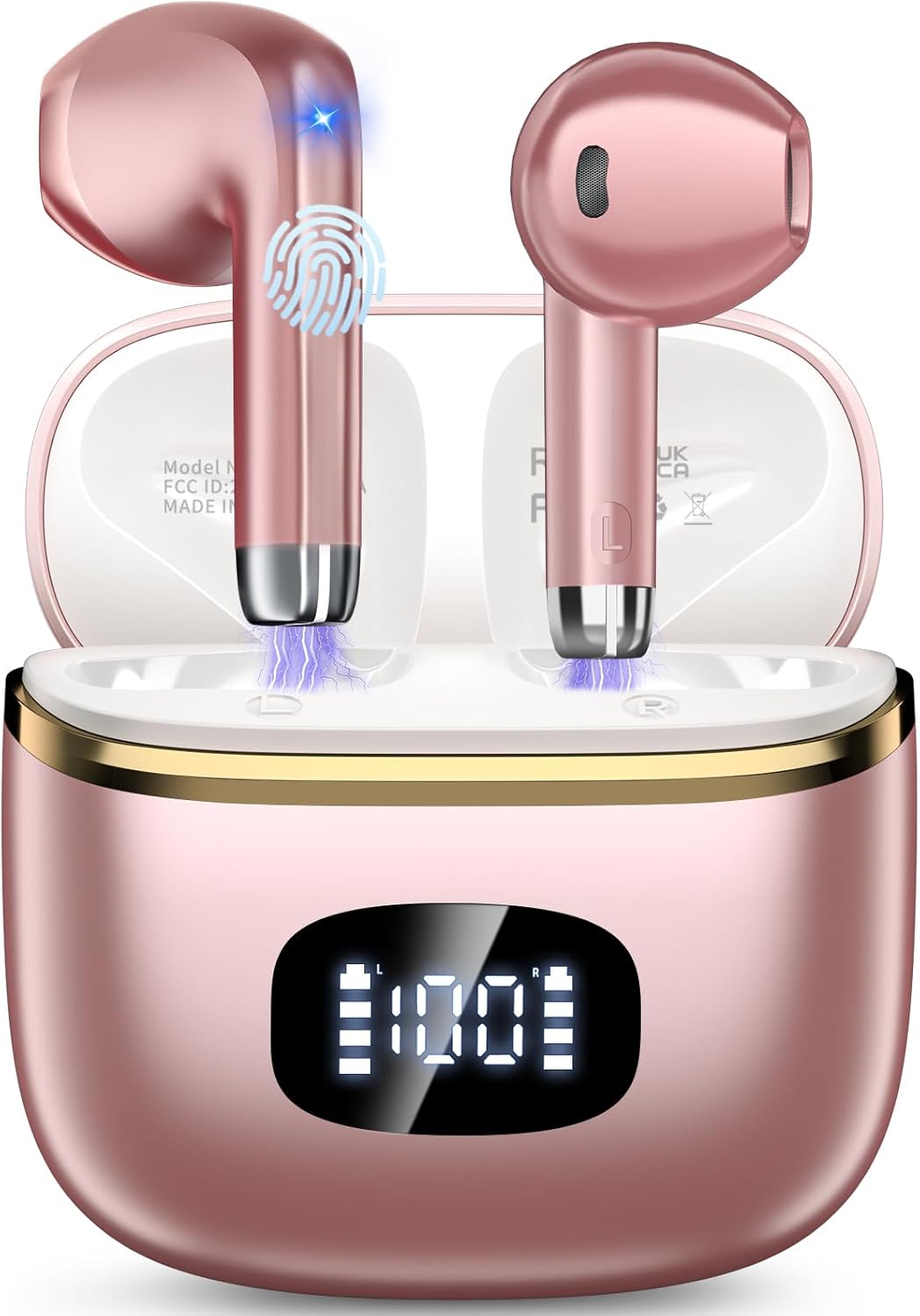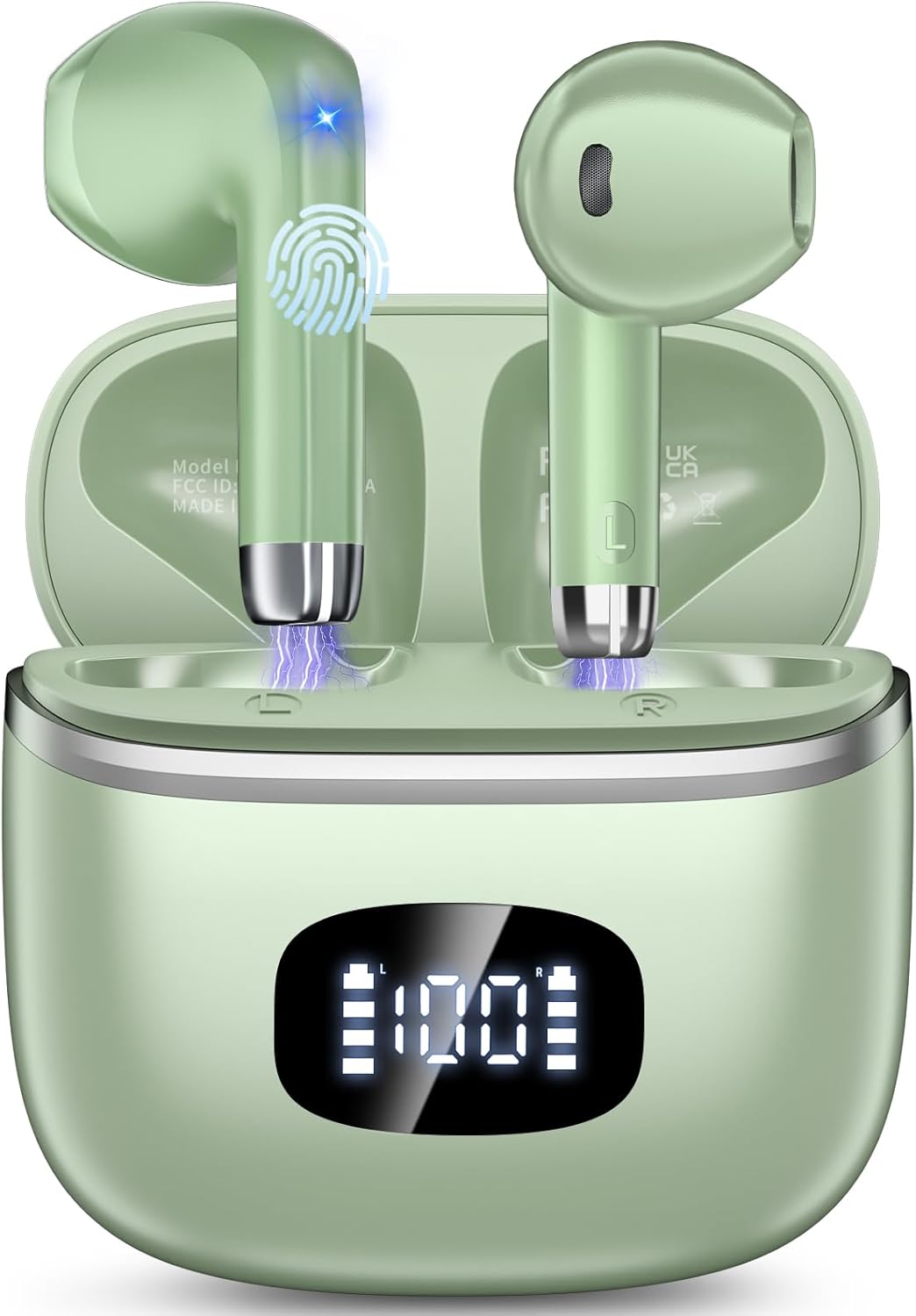 • 40 часа възпроизвеждане и LED дисплей: Bluetooth слушалките за уши могат да се използват самостоятелно 7 часа и 40 часа с кутията за зареждане. Bluetooth слушалките използват порт за бързо зареждане тип C. Цифровият LED дисплей може да проверява оставащия заряд и състоянието на зареждане.