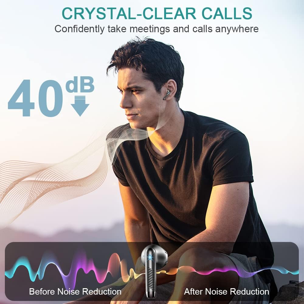 Bluetooth слушалки Безжични Bluetooth 5.3 слушалки с 4 ENC микрофона, 2023 Безжични слушалки 42H дълбок бас Безжични слушалки с шумопотискане, IP7 Водоустойчиви слушалки LED дисплей