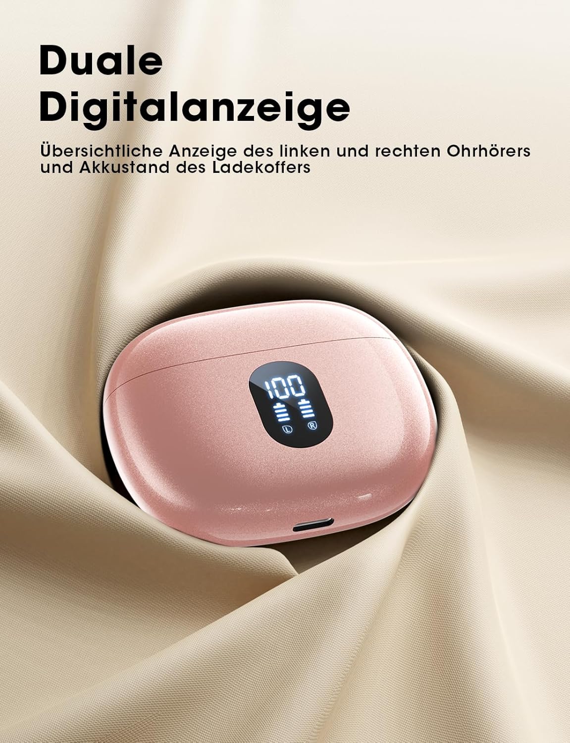 Bluetooth слушалки, Безжични Bluetooth 5.4 слушалки за уши с 4 ENC микрофон за шумопотискане, LED дисплей, 48 часа дълбок бас безжични слушалки, IPX7 водоустойчиви слушалки за работа и учене