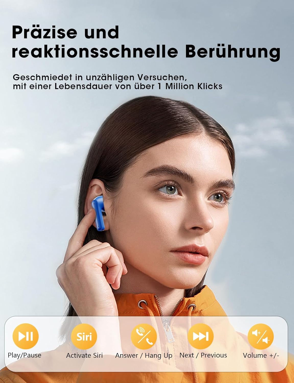 • Всичко под контрол: нашите безжични слушалки предлагат интуитивно сензорно управление за музика, разговори и сила на звука. С висококачественото IPX7 nano покритие, тези Bluetooth слушалки са оптимално защитени от пот и дъжд - идеалният комплект за спорт и дейности на открито.