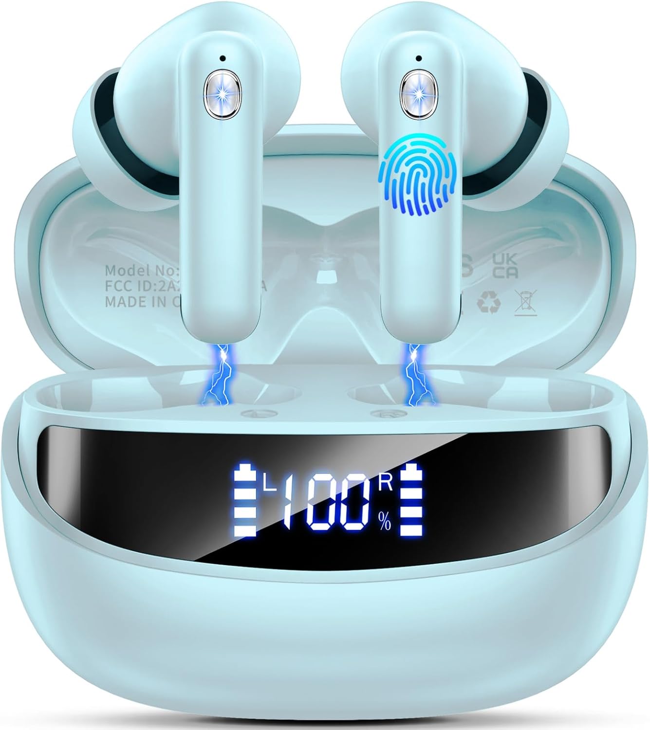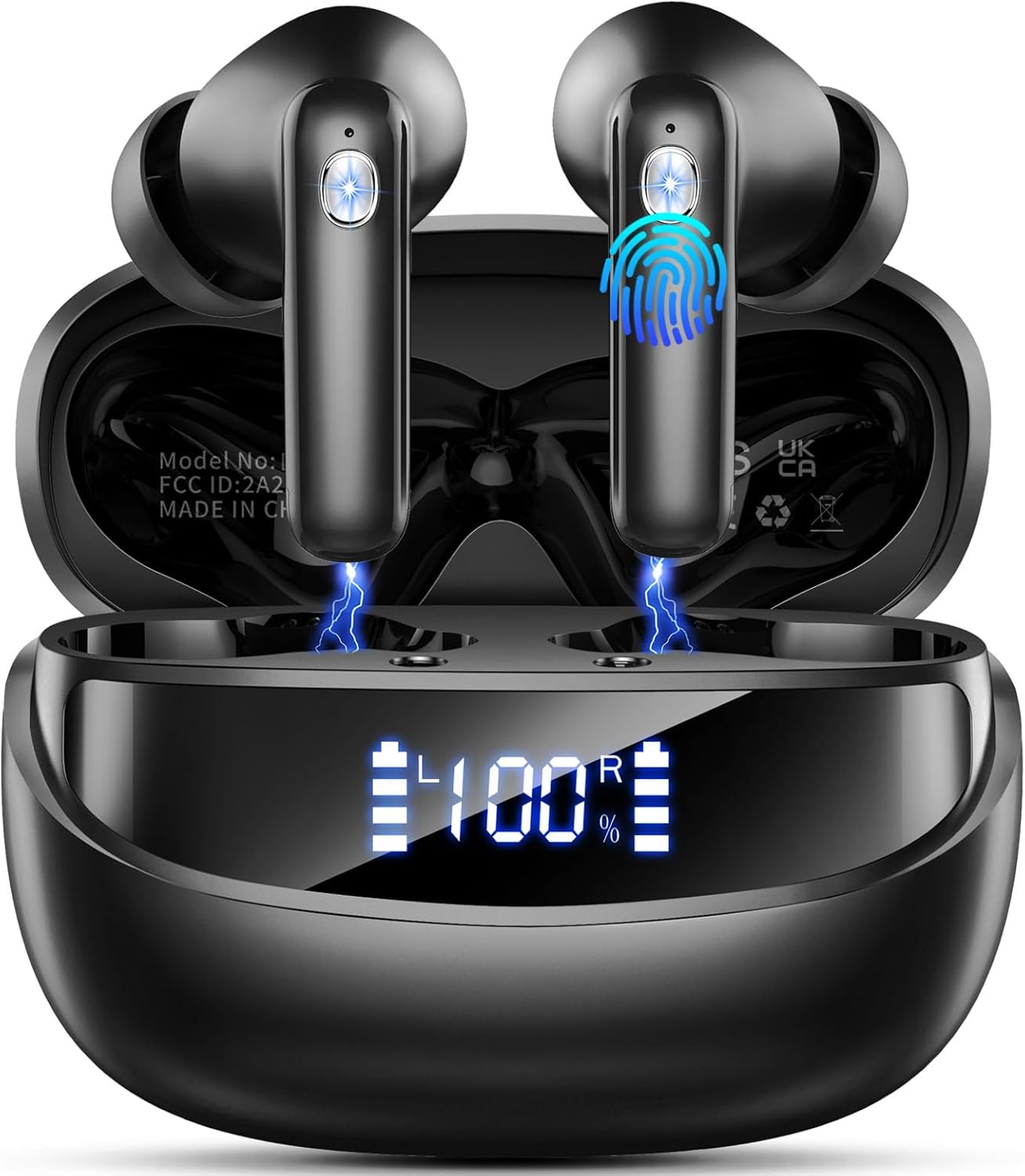 • 50 часа време за възпроизвеждане и LED дигитален дисплей: безжичните слушалки позволяват до 8 часа време за възпроизвеждане с едно зареждане и се предлагат със зарядна кутия, която осигурява общо време за възпроизвеждане от 50 часа. Благодарение на технологията за бързо зареждане USB-C, слушалките могат да възпроизвеждат музика в продължение на 1 час само след 10 минути зареждане, а пълното зареждане отнема 1,5 часа. Слушалките имат вграден двоен LED дисплей, който показва точно оставащия заряд на батерията на зарядната кутия и слушалките в ушите.