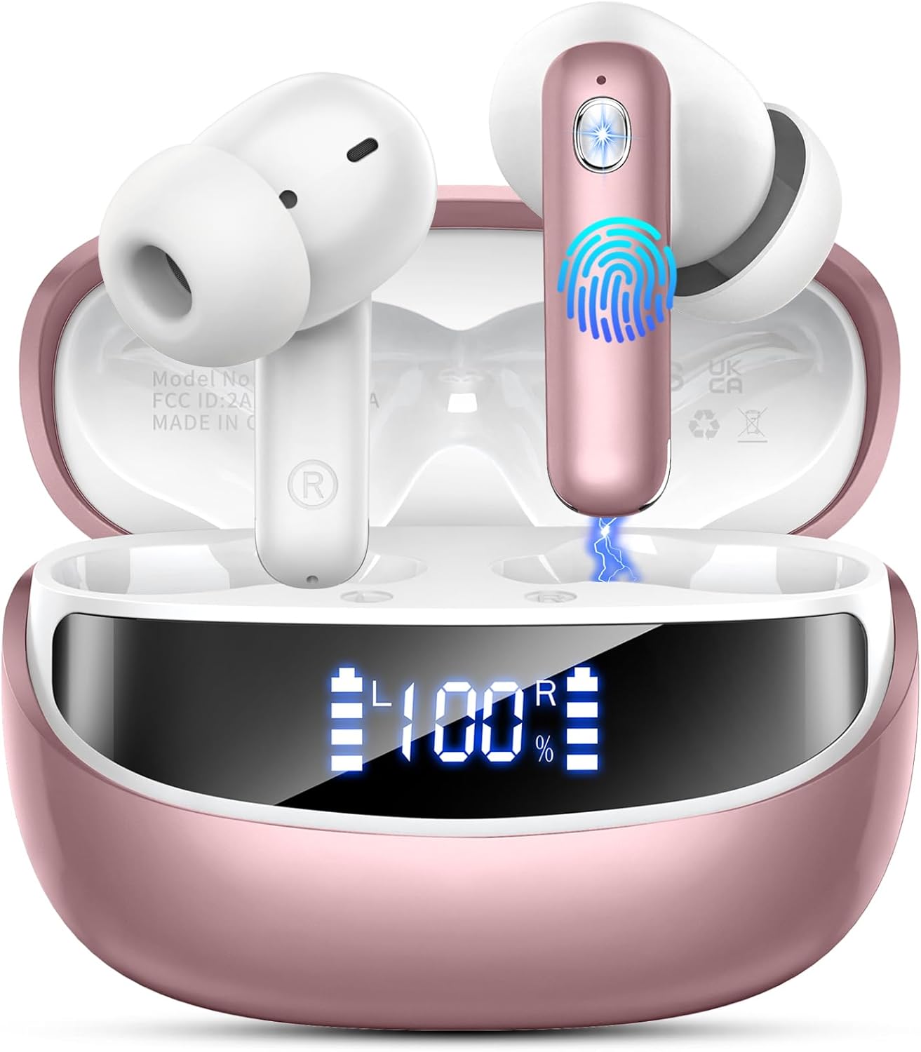 Bluetooth слушалки Nerunsa, безжични Bluetooth 5.4 HiFi стерео, слушалки за уши с ENC микрофони за шумопотискане, водоустойчиви слушалки IP7, 50 часа време за възпроизвеждане, безжични слушалки