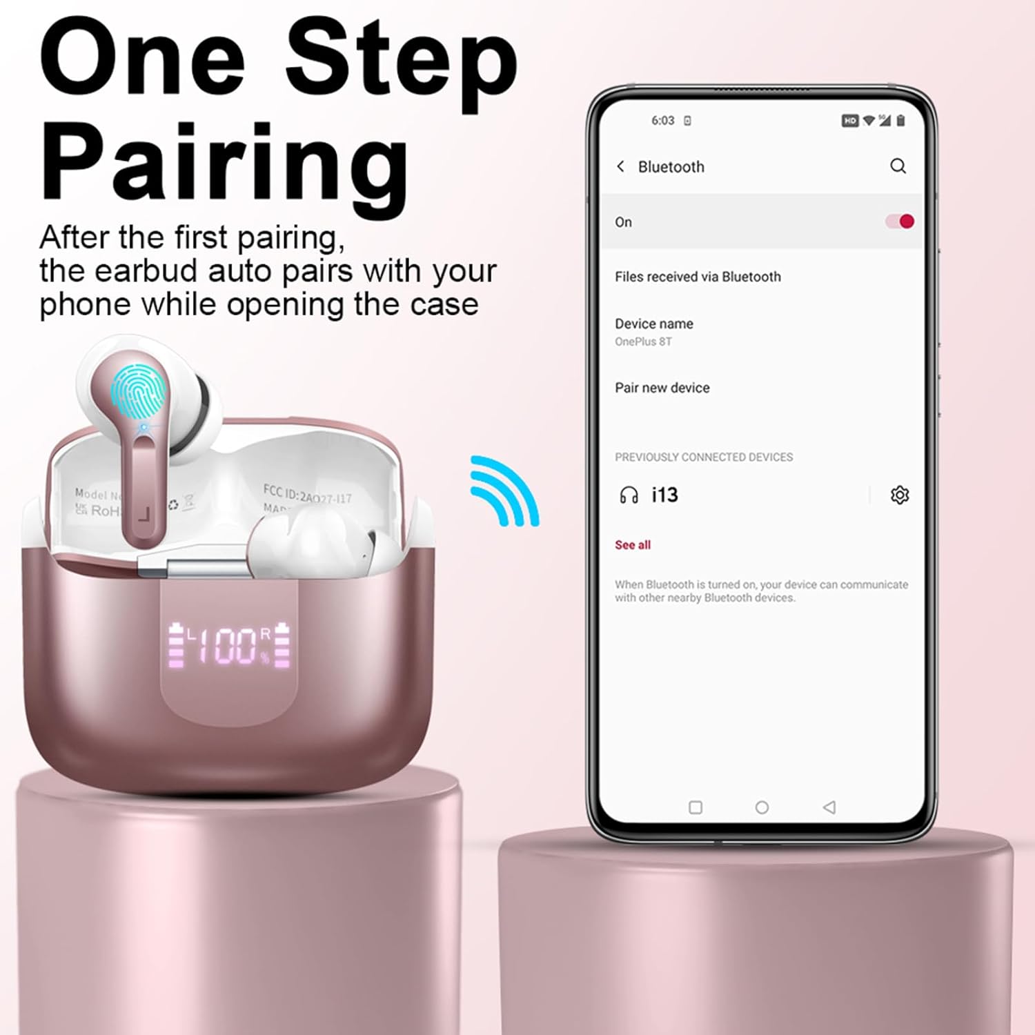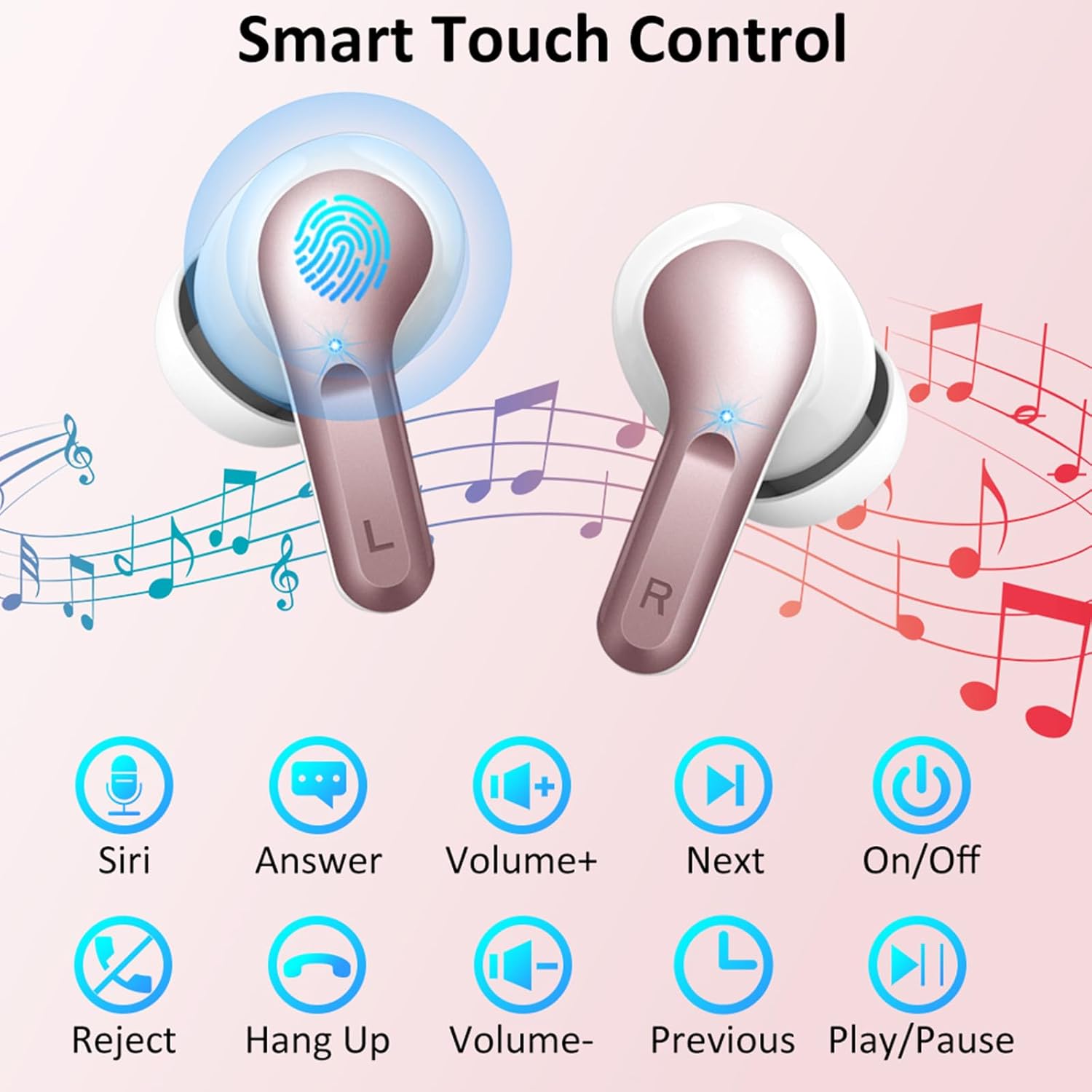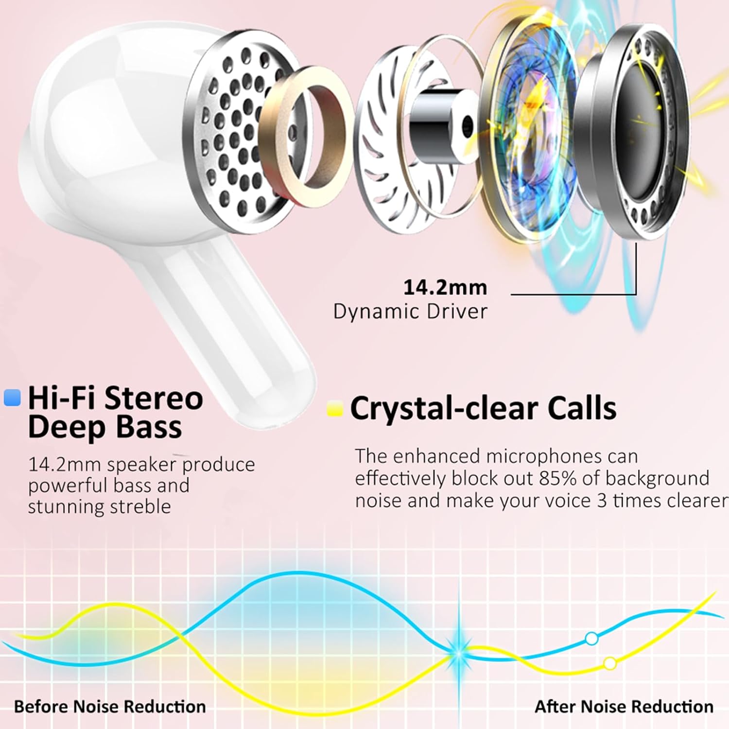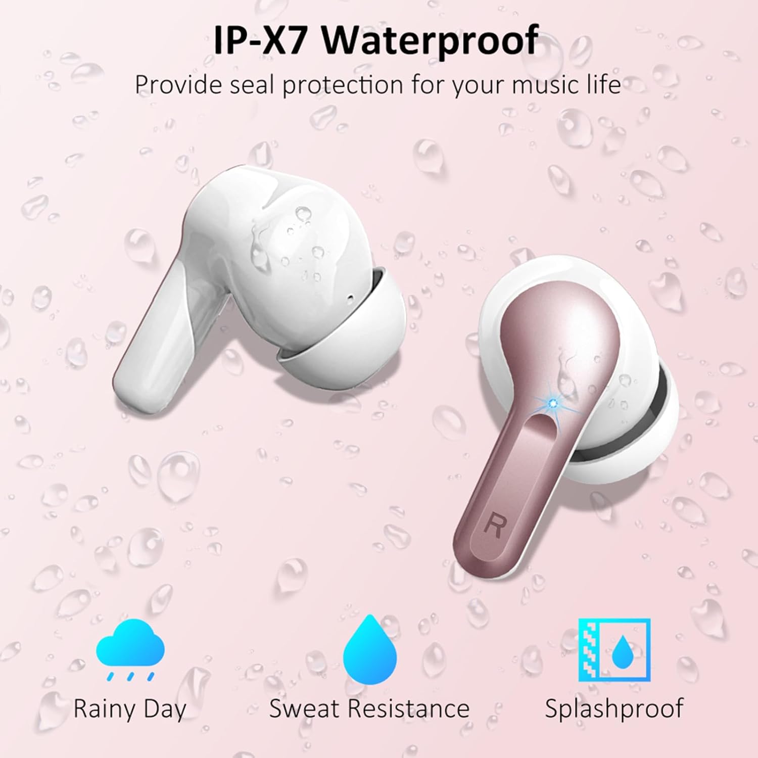Bluetooth слушалки Ordtop, 50 часа 3D стерео слушалки, безжични Bluetooth 5.4, 4 ENC микрофон с шумопотискане, 3g безжични слушалки с дълбок бас, USB-C слушалки за поставяне в ушите, водоустойчиви слушалки IP-X7