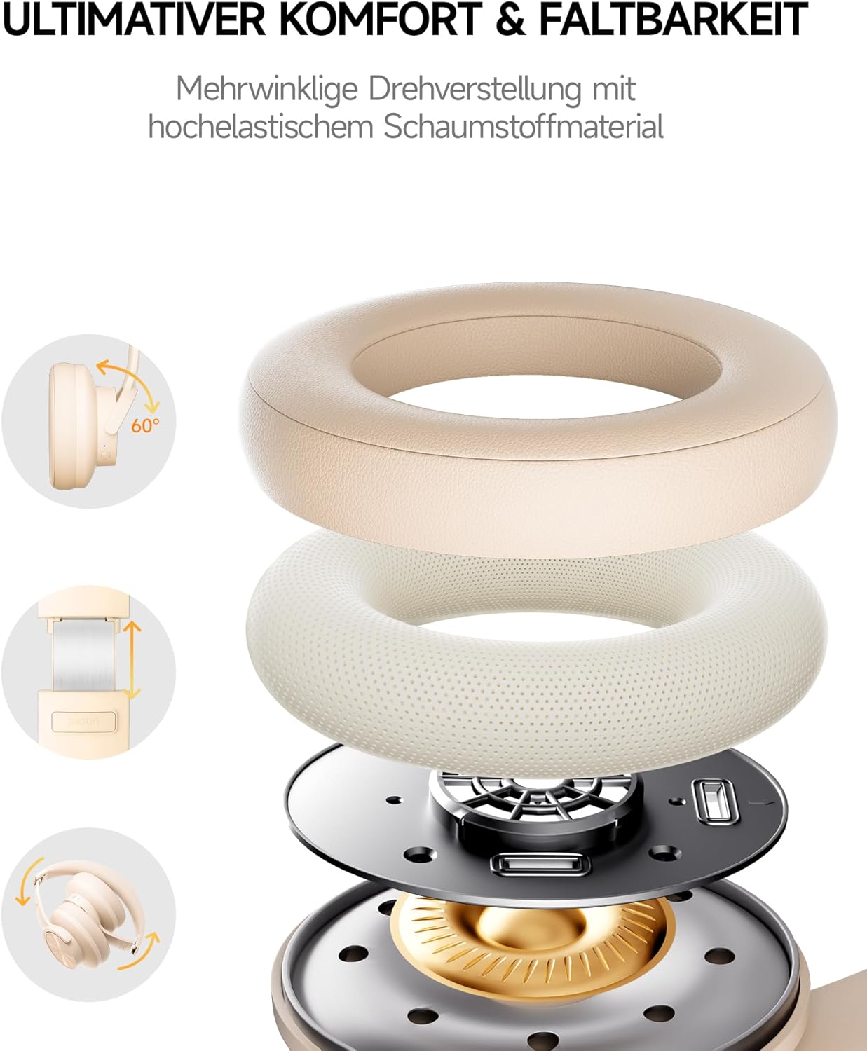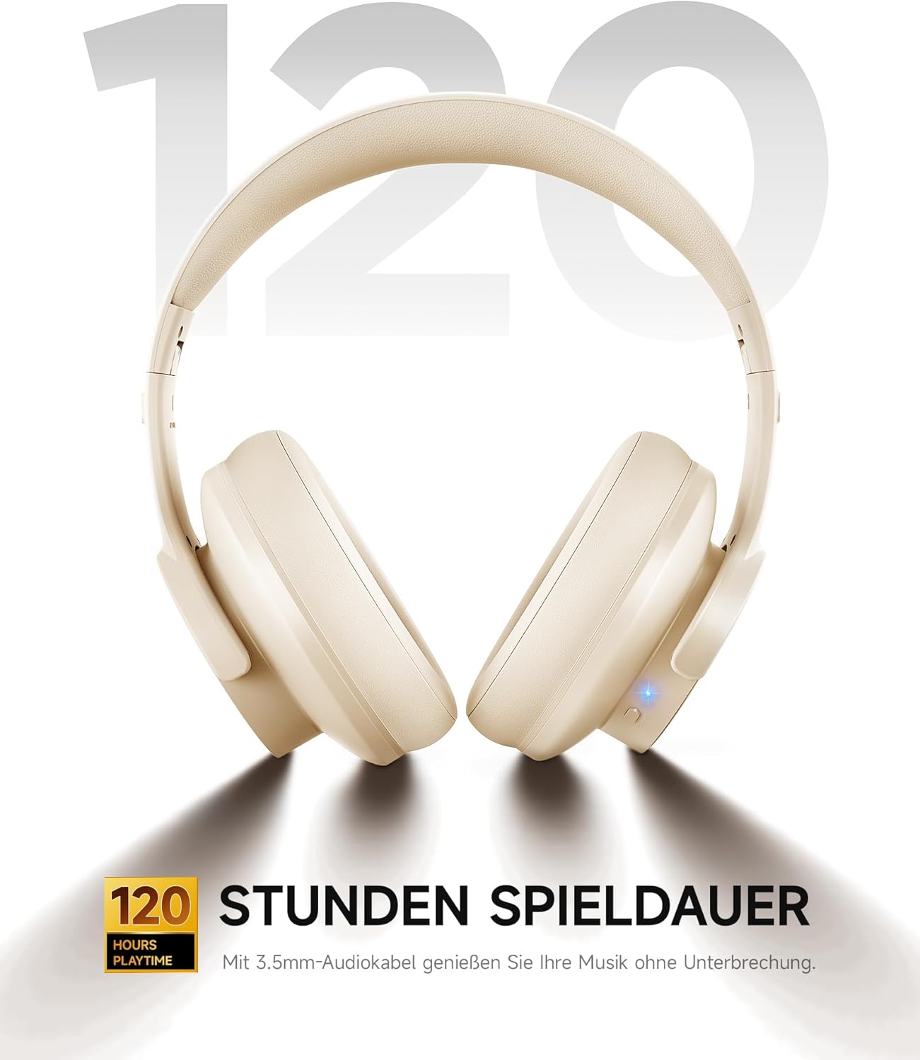 Bluetooth слушалки Picun B8, 120 часа време на възпроизвеждане, безжична Bluetooth връзка с 3 режима на еквалайзер, ниска латентност, разговори със свободни ръце, слушалки за пътуване, дом, офис, мобилен телефон, компютър, каки бяло