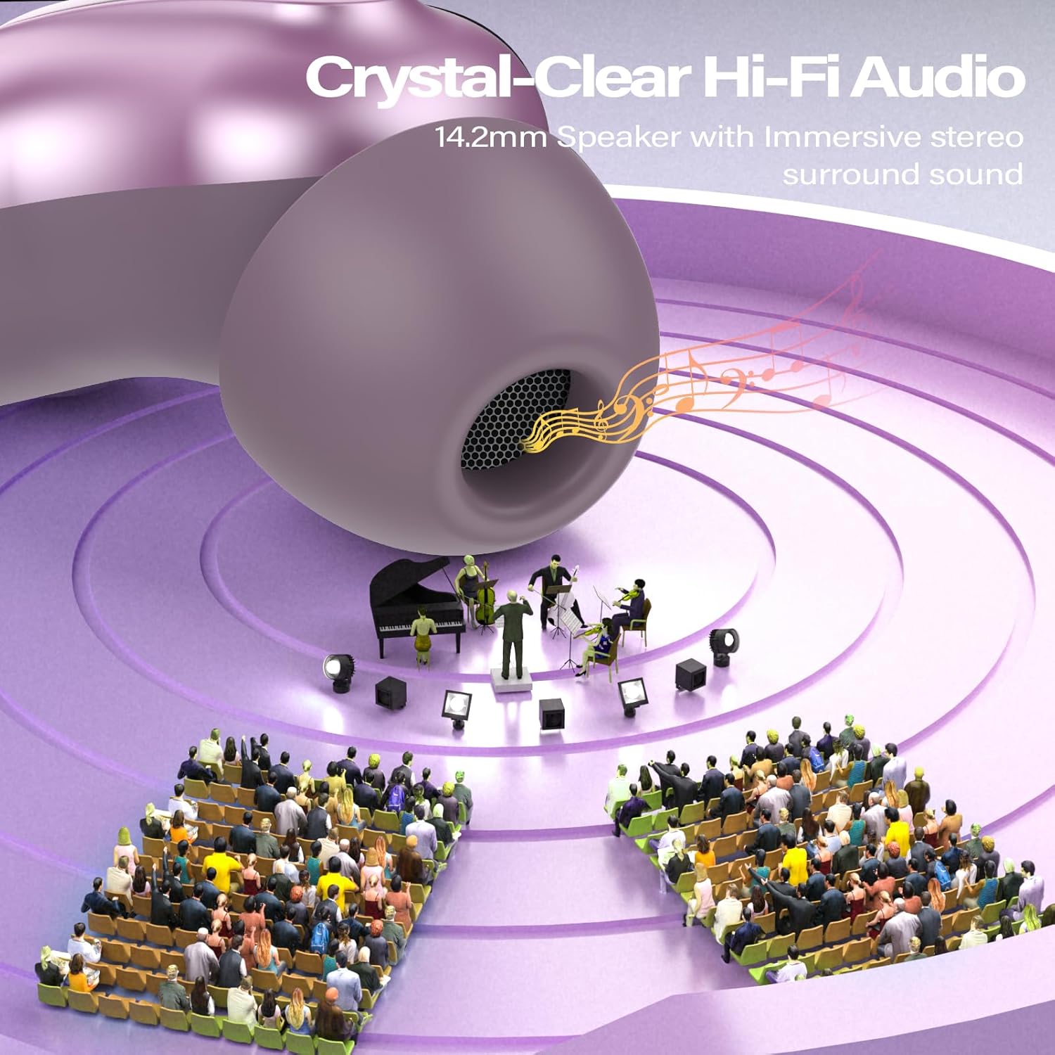 • Ефективно шумопотискане: безжичните слушалки за уши D20 осигуряват двойно шумопотискане. Активното шумопотискане (ANC) потиска околния шум, като хъркане, уличен шум или климатик. В същото време, 4 ENC микрофона надеждно филтрират смущенията по време на разговори. Идеални за фокусирано слушане или телефонни разговори дори в шумна среда.