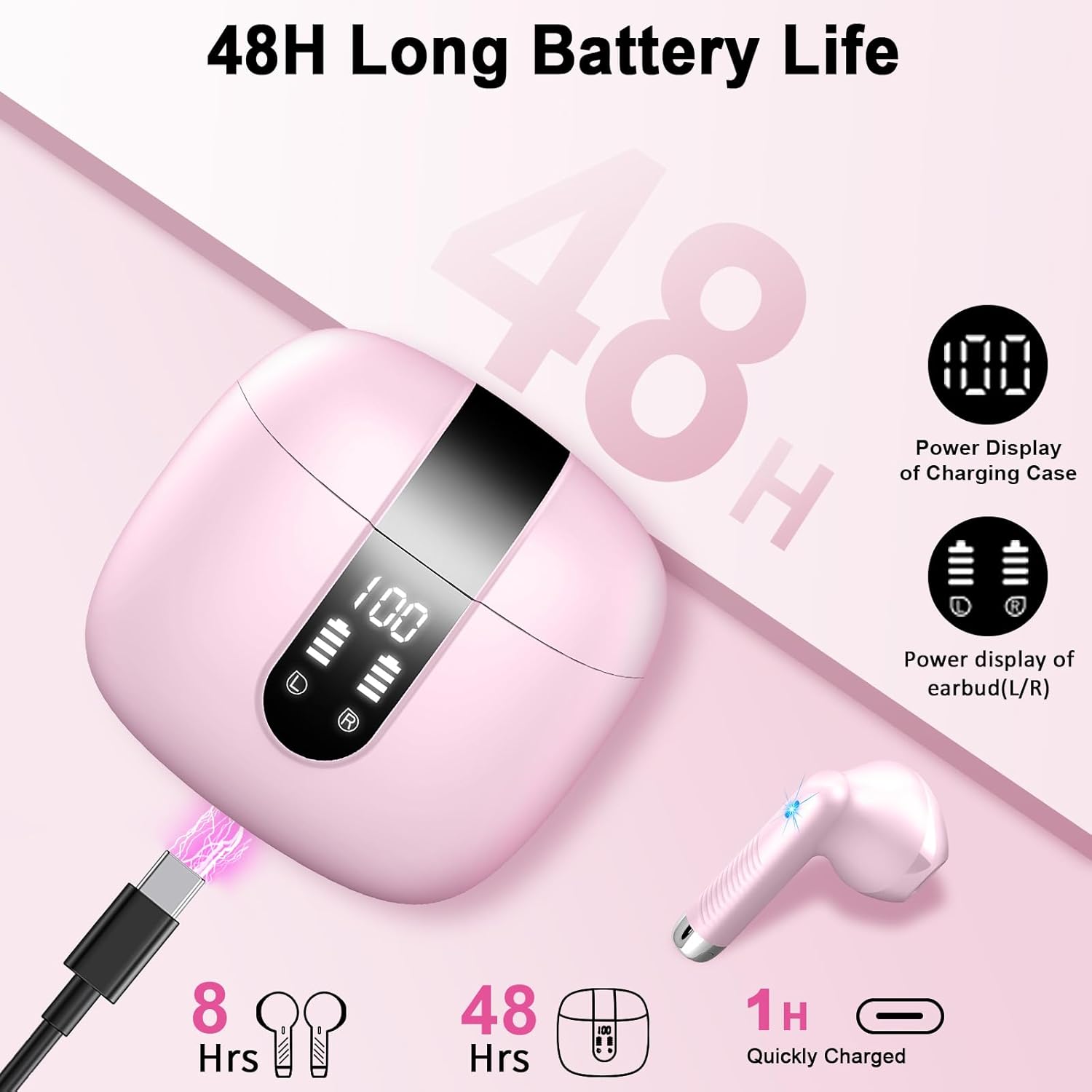 • Мини LED калъф за зареждане и 48 часа живот на батерията: Bluetooth слушалките за уши са оборудвани с интелигентен цифров LED дисплей, който може точно да показва оставащата батерия в цифров формат. След бързо зареждане чрез Type-C можете да слушате музика в продължение на цели 6-8 часа с тези слушалки за уши, докато калъфът за зареждане удължава времето до 48 часа. Джобният калъф за зареждане не заема допълнително място и може да се носи навсякъде.