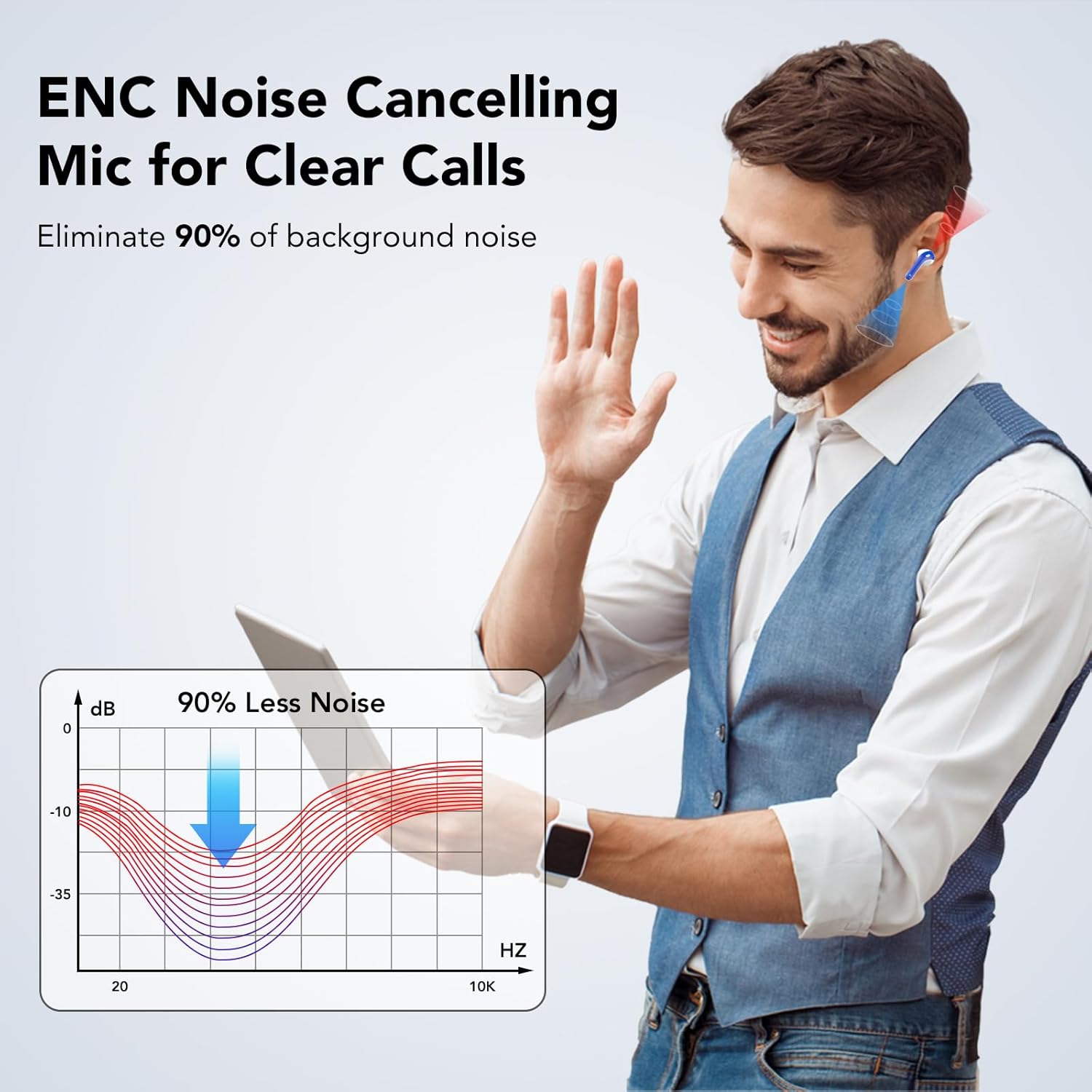 • 85% повече бас и по-ясни разговори: Bluetooth слушалки за уши с 14,2 мм графенова мембрана за 85% повече бас и Bluetooth слушалки за уши с хибриден ENC двоен микрофон, който пасивно потиска 90% от фоновия шум за по-ясни разговори.