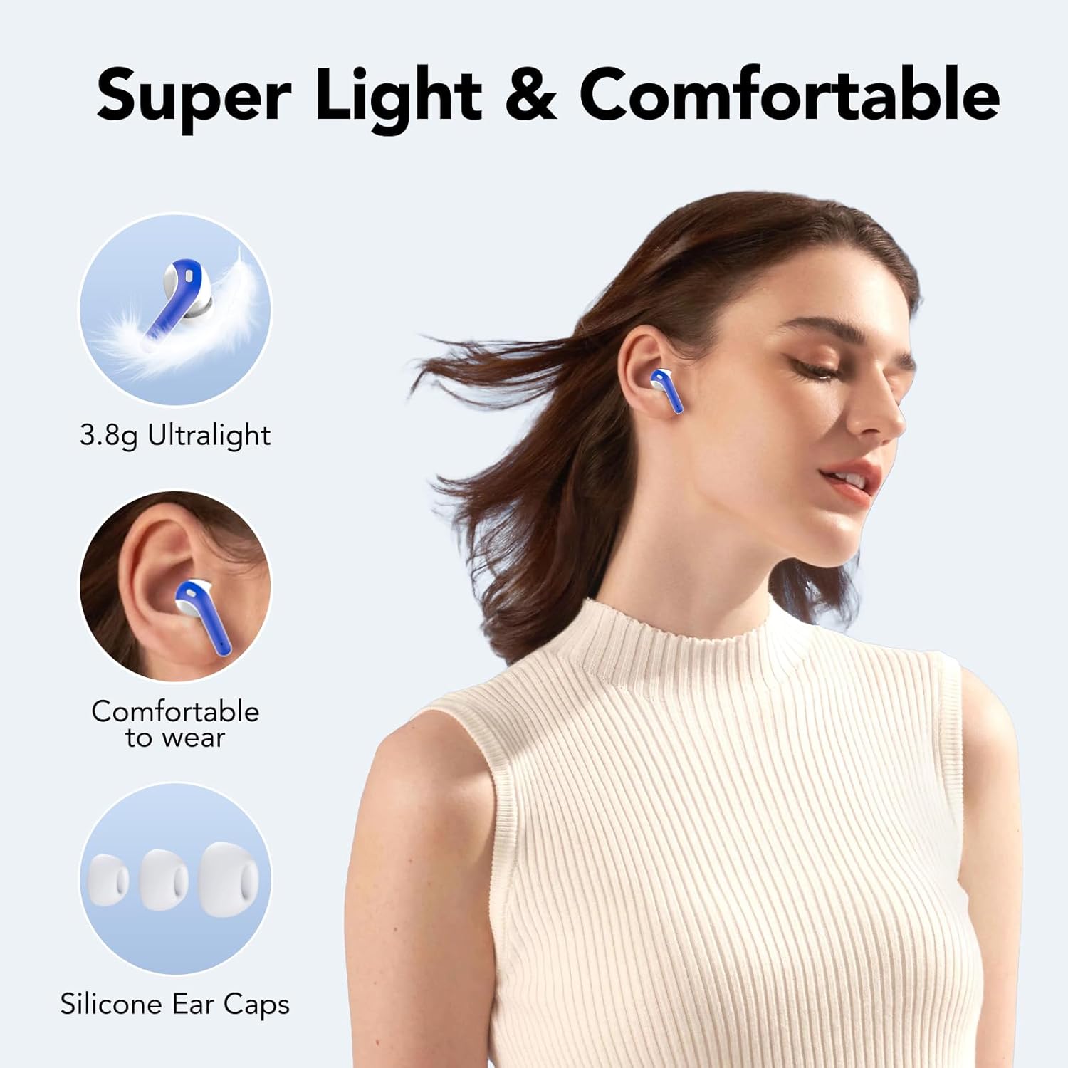 • Bluetooth 5.3 и сдвояване в една стъпка: слушалките за уши са с най-новата версия на технологията Bluetooth 5.3, която е 200% по-стабилна от версия 5.0 и позволява слушане с ниска латентност и стабилни разговори. След първото свързване, извадете слушалките и те автоматично ще се свържат с вашето устройство.