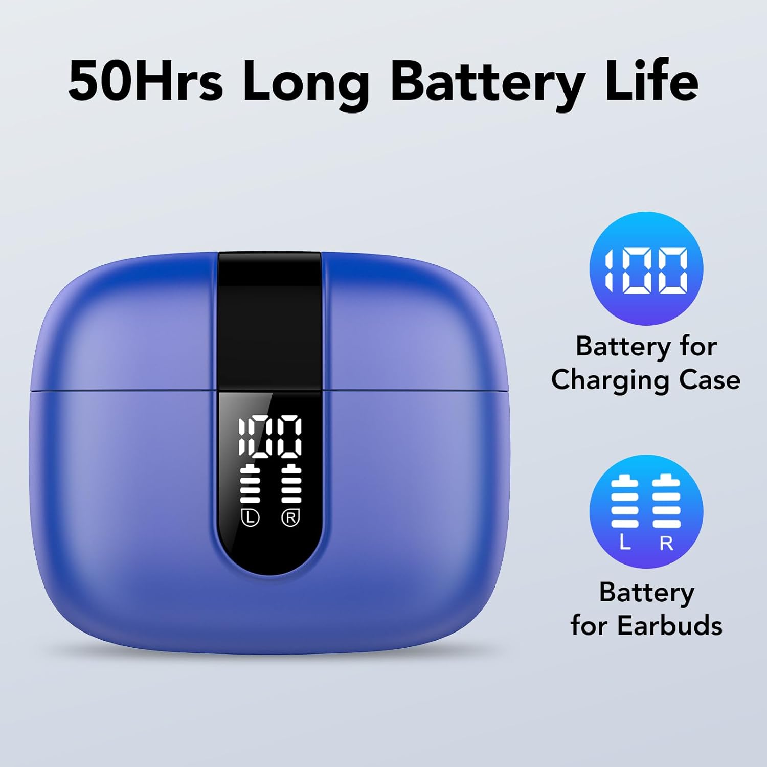 Bluetooth слушалки, Слушалки за уши, Безжични Bluetooth 5.3 с 50H дълбок бас, 2024 безжични слушалки, Слушалки с шумопотискане с 4 ENC микрофона, Водоустойчиви слушалки IPX7, Тъмносини