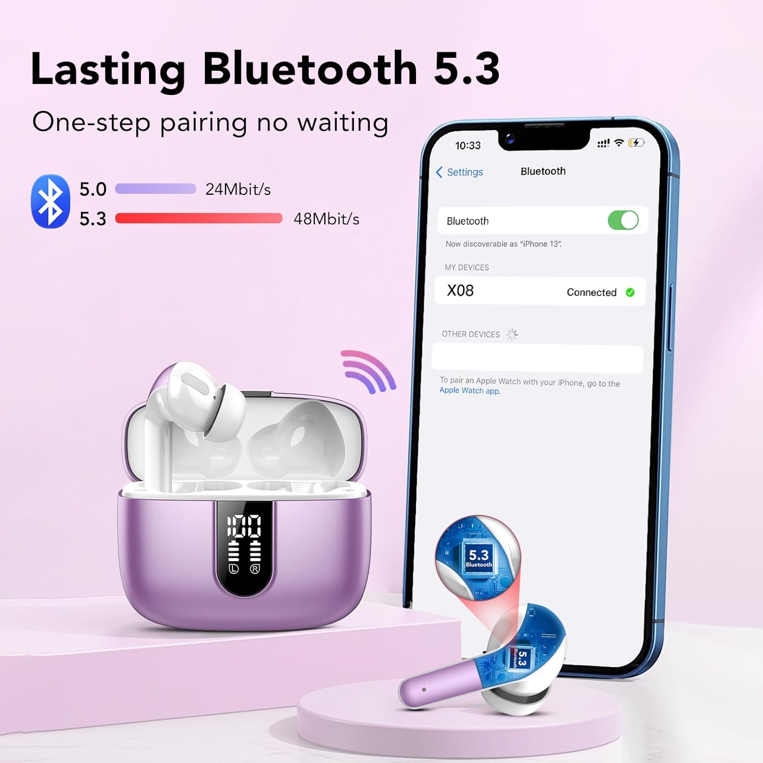 • Bluetooth 5.3 и сдвояване в една стъпка: слушалките за уши са с най-новата версия на технологията Bluetooth 5.3, която е 200% по-стабилна от версия 5.0 и позволява слушане с ниска латентност и стабилни разговори. След първото свързване, извадете слушалките и те автоматично ще се свържат с вашето устройство.