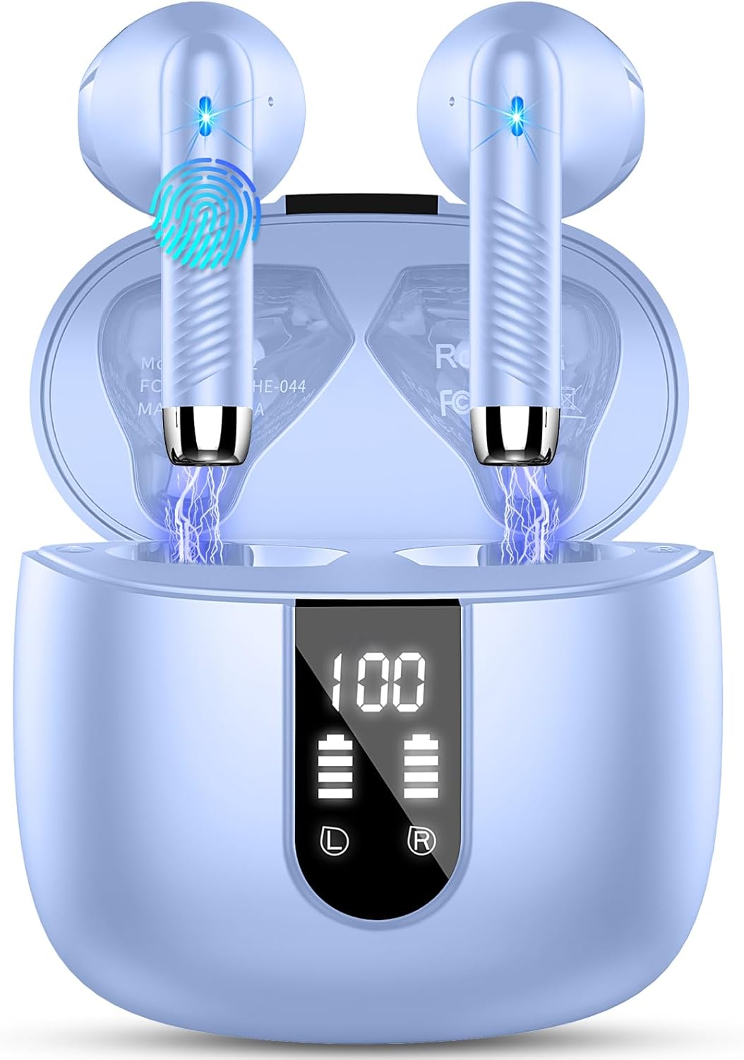 • Мини LED калъф за зареждане и 48 часа живот на батерията: Bluetooth слушалките за уши са оборудвани с интелигентен цифров LED дисплей, който може точно да показва оставащата батерия в цифров формат. След бързо зареждане чрез Type-C можете да слушате музика в продължение на цели 6-8 часа с тези слушалки за уши, докато калъфът за зареждане удължава времето до 48 часа. Джобният калъф за зареждане не заема допълнително място и може да се носи навсякъде.