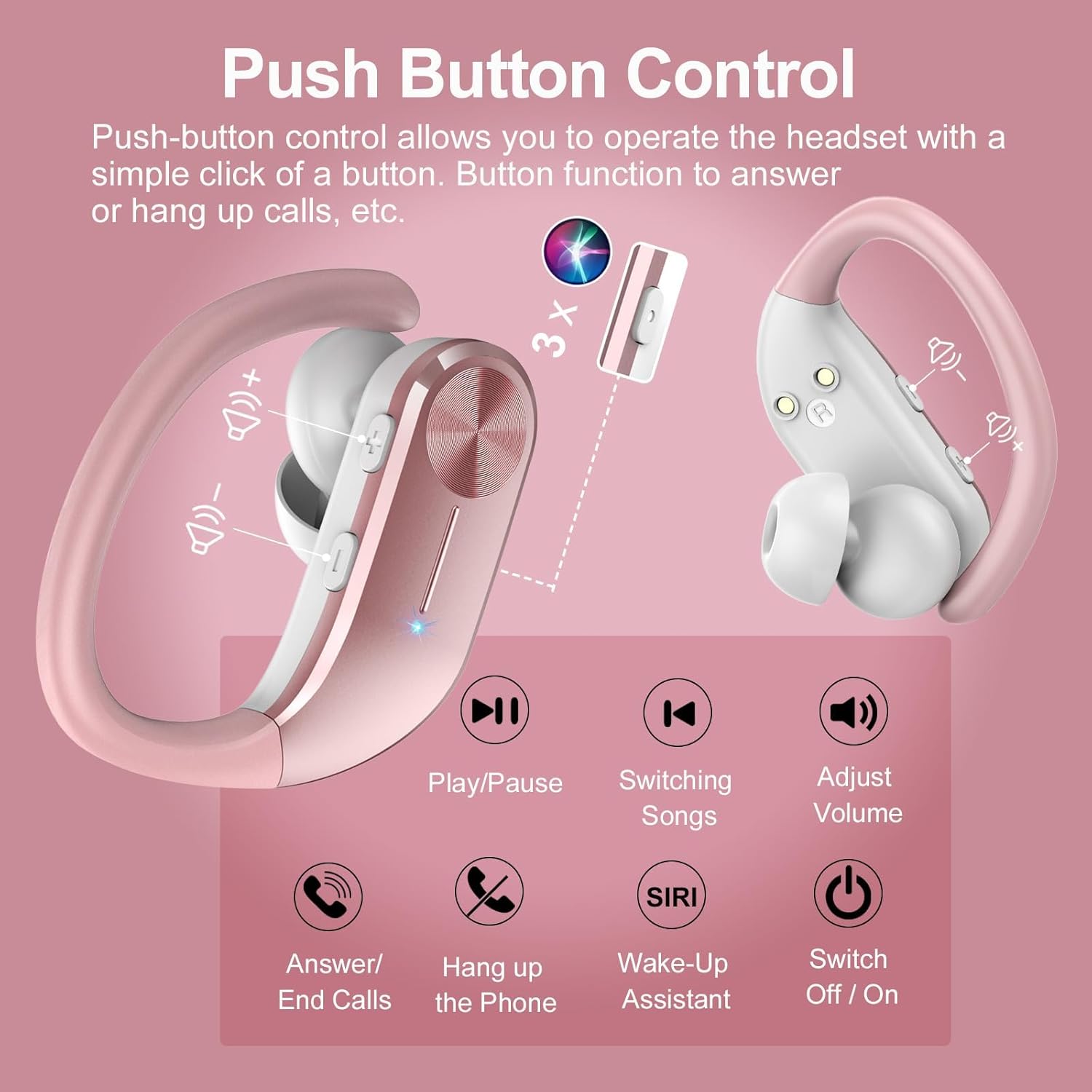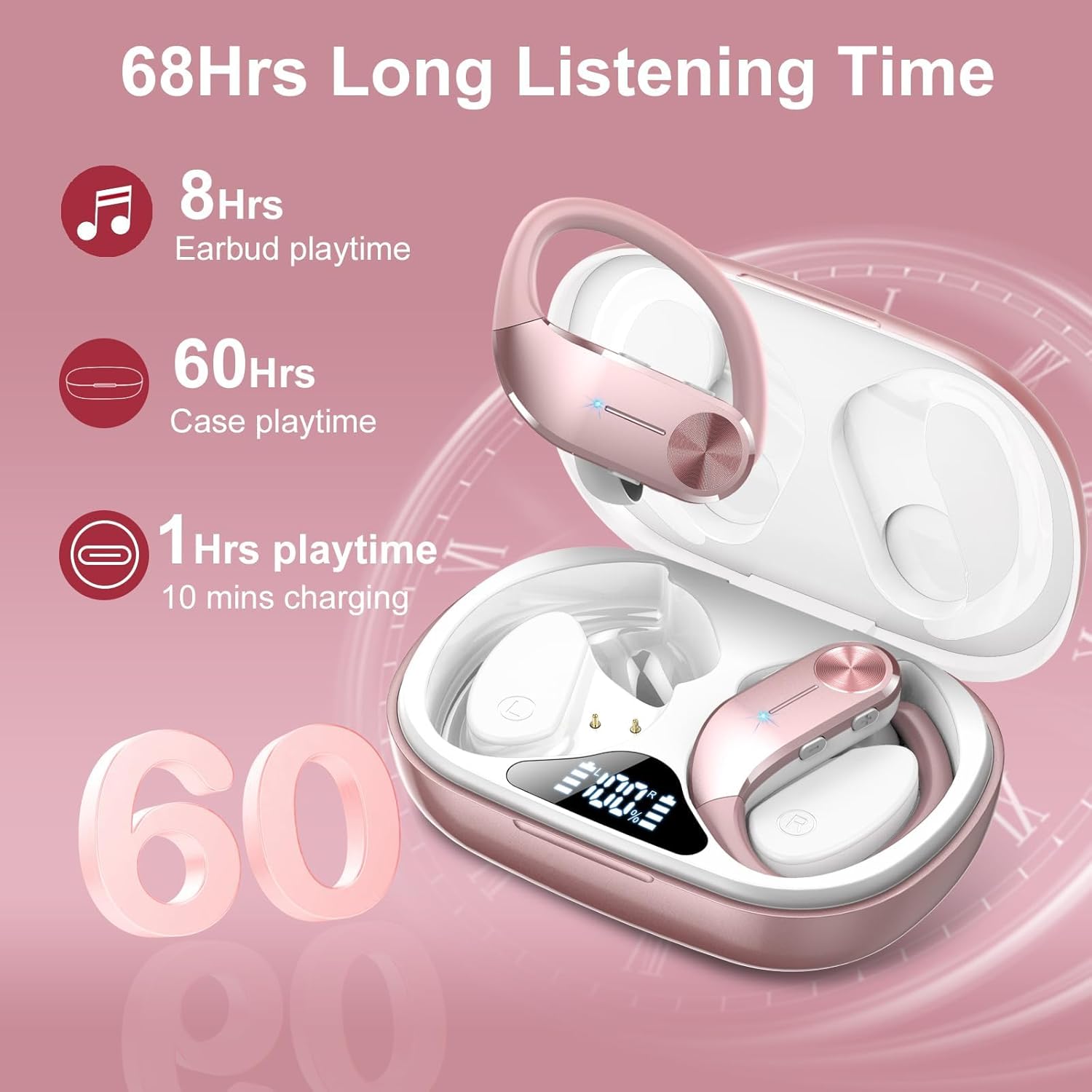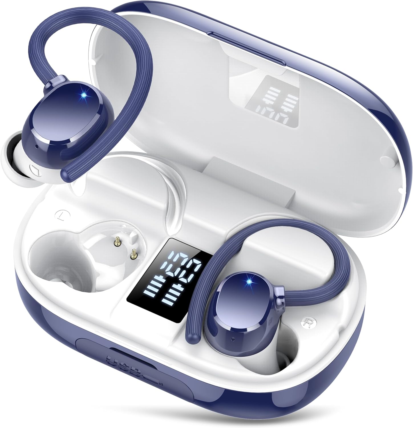 Bluetooth слушалки Sport, 2025 Безжични слушалки за уши Bluetooth 5.3 с HD микрофон, двоен LED дисплей, изключителен звук, 68 часа време за възпроизвеждане, комфортно прилягане, водоустойчиви слушалки IP8 за iOS и Android