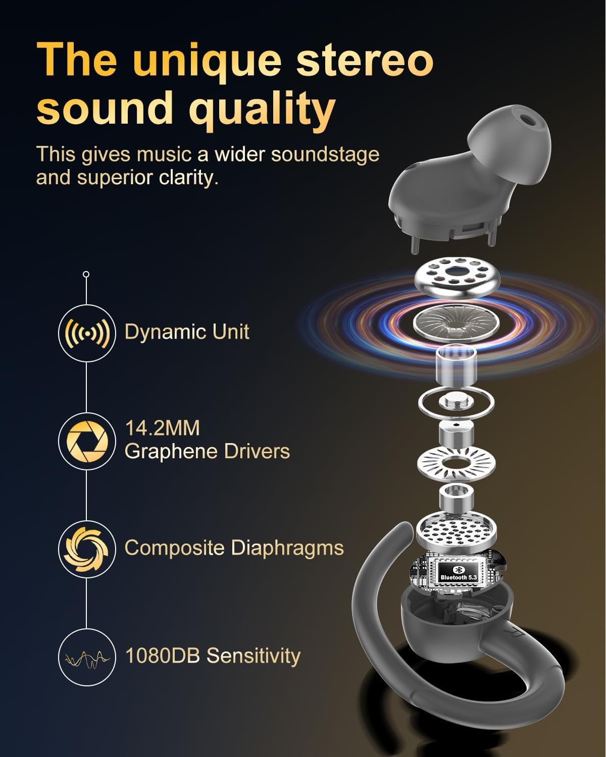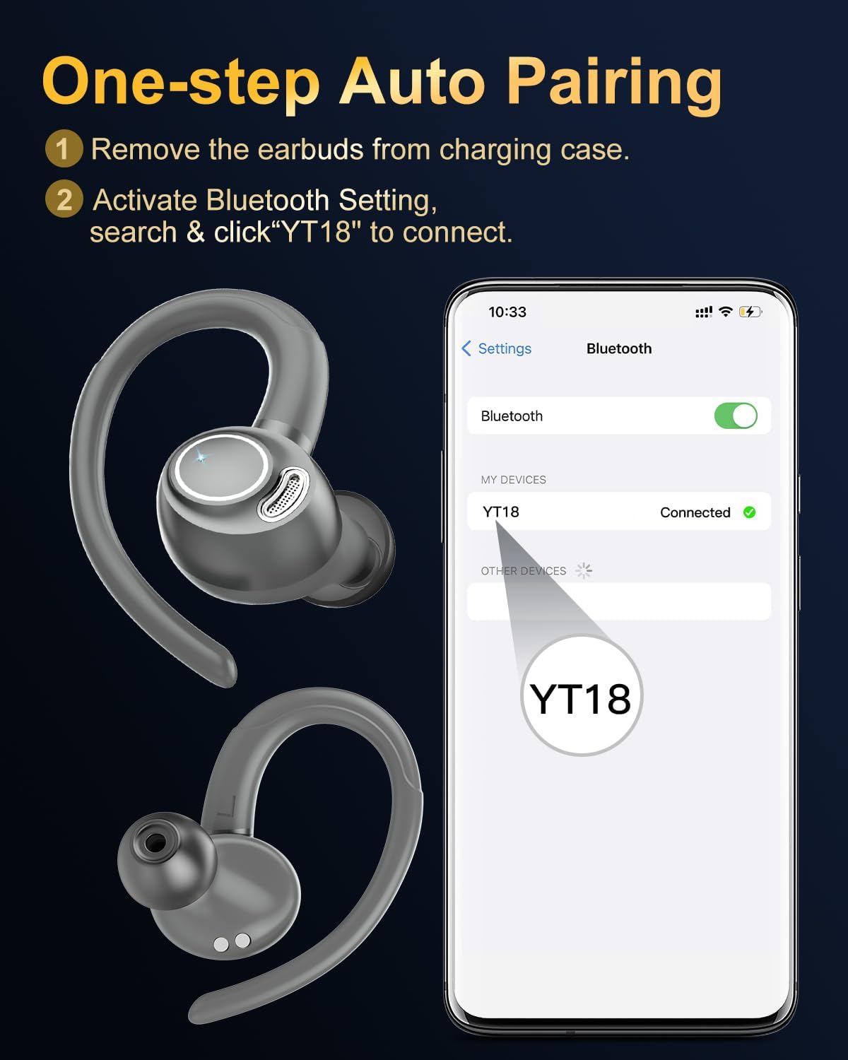 • Дизайн със спортни кукички за уши: оборудвани с 3 чифта силиконови тапи за уши с различни размери, безжичните слушалки са ергономично оформени, много стабилни и леки. Мекият дизайн на кукичките за уши (с еластична еластичност) поддържа слушалките винаги удобни в ушите ви, когато бягате или извършвате натоварващи спортни дейности.