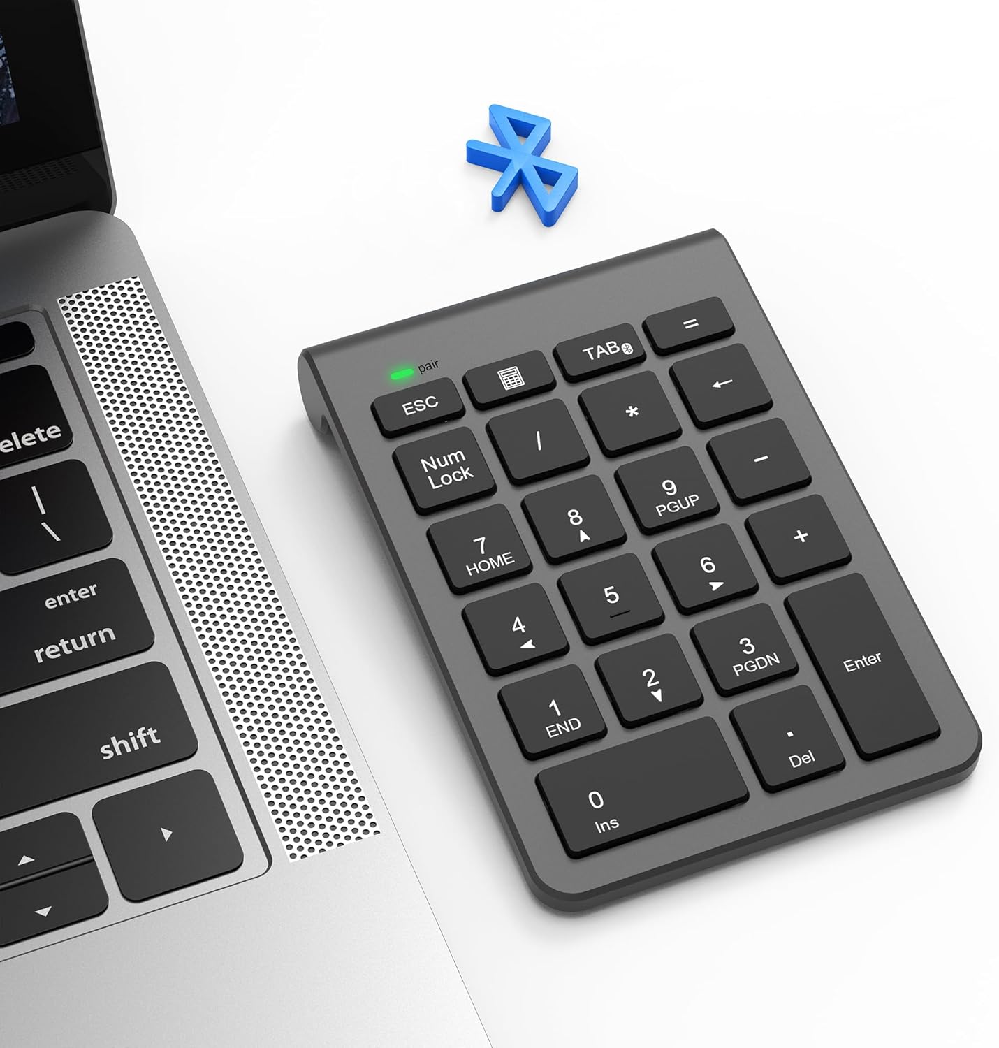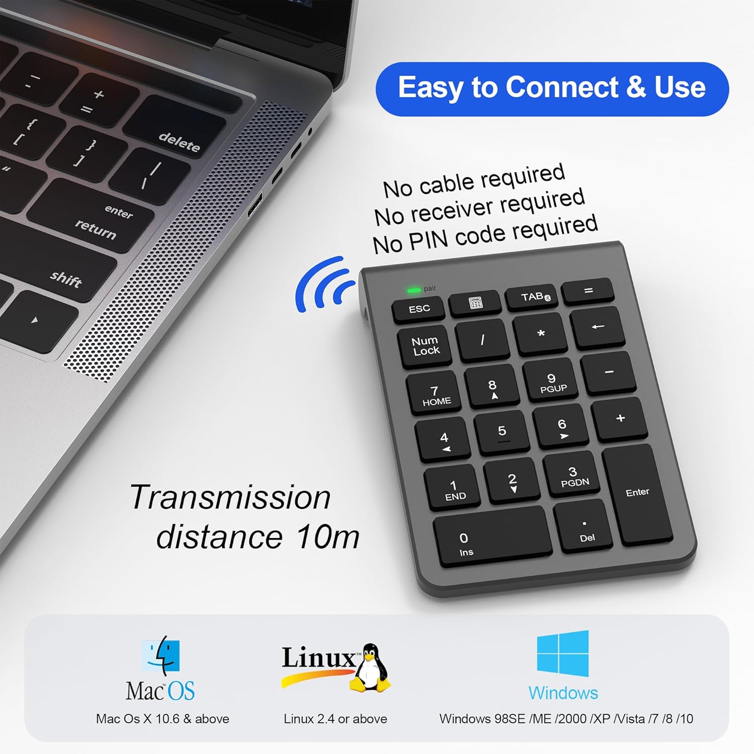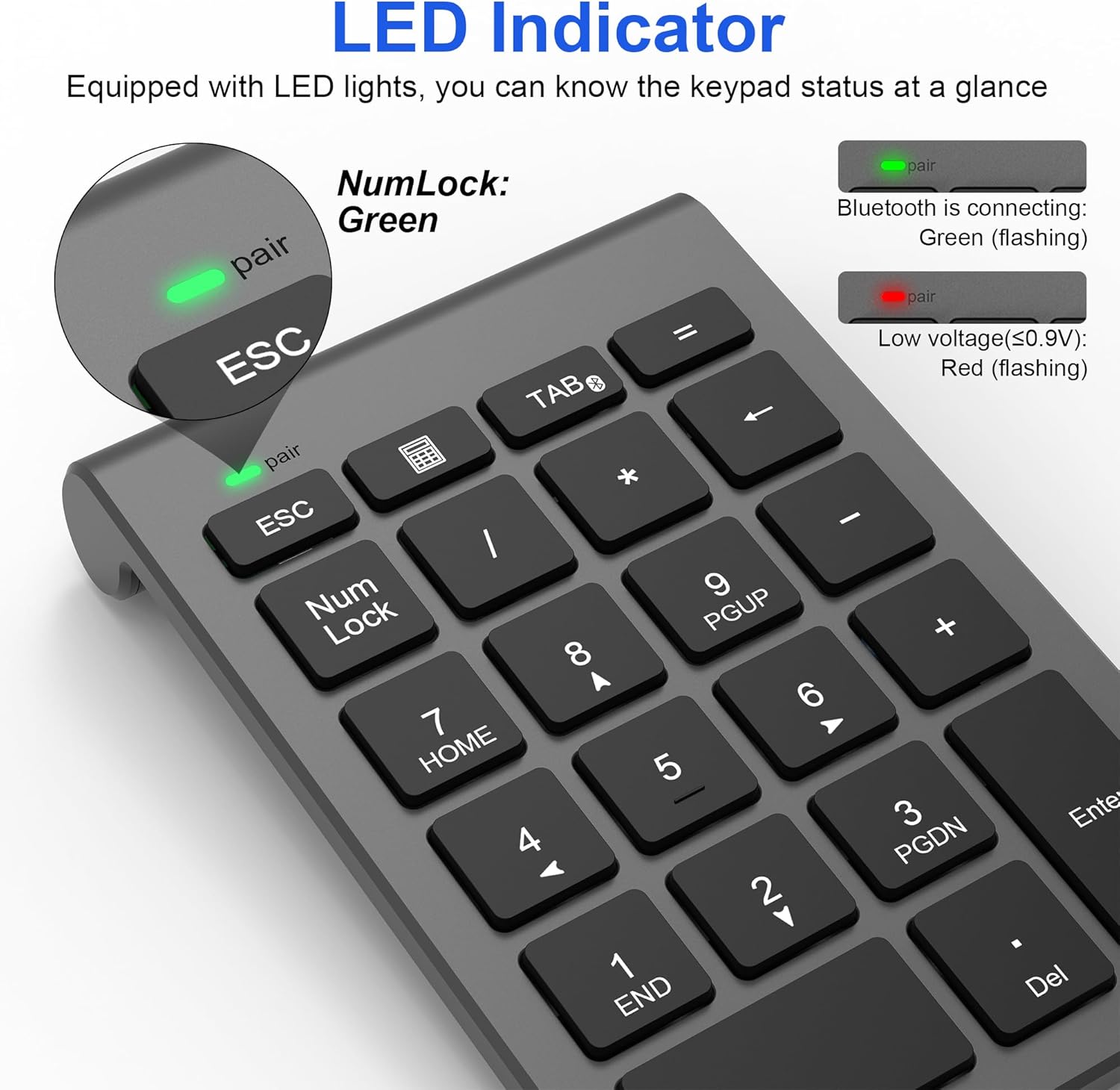 Bluetooth цифрова клавиатура, безжична цифрова клавиатура, цифров блок с 22 клавиша и множество клавишни комбинации, Bluetooth цифрова клавиатура с енергоспестяващ режим, ергономична, за лаптоп, настолен компютър, компютър, преносим компютър