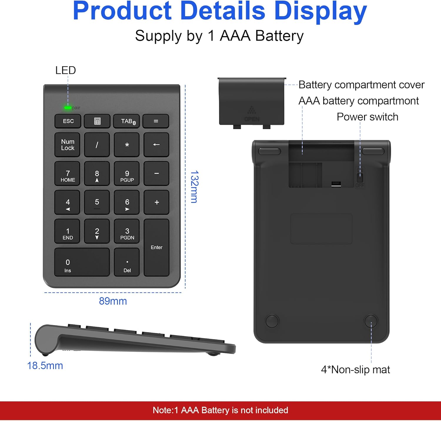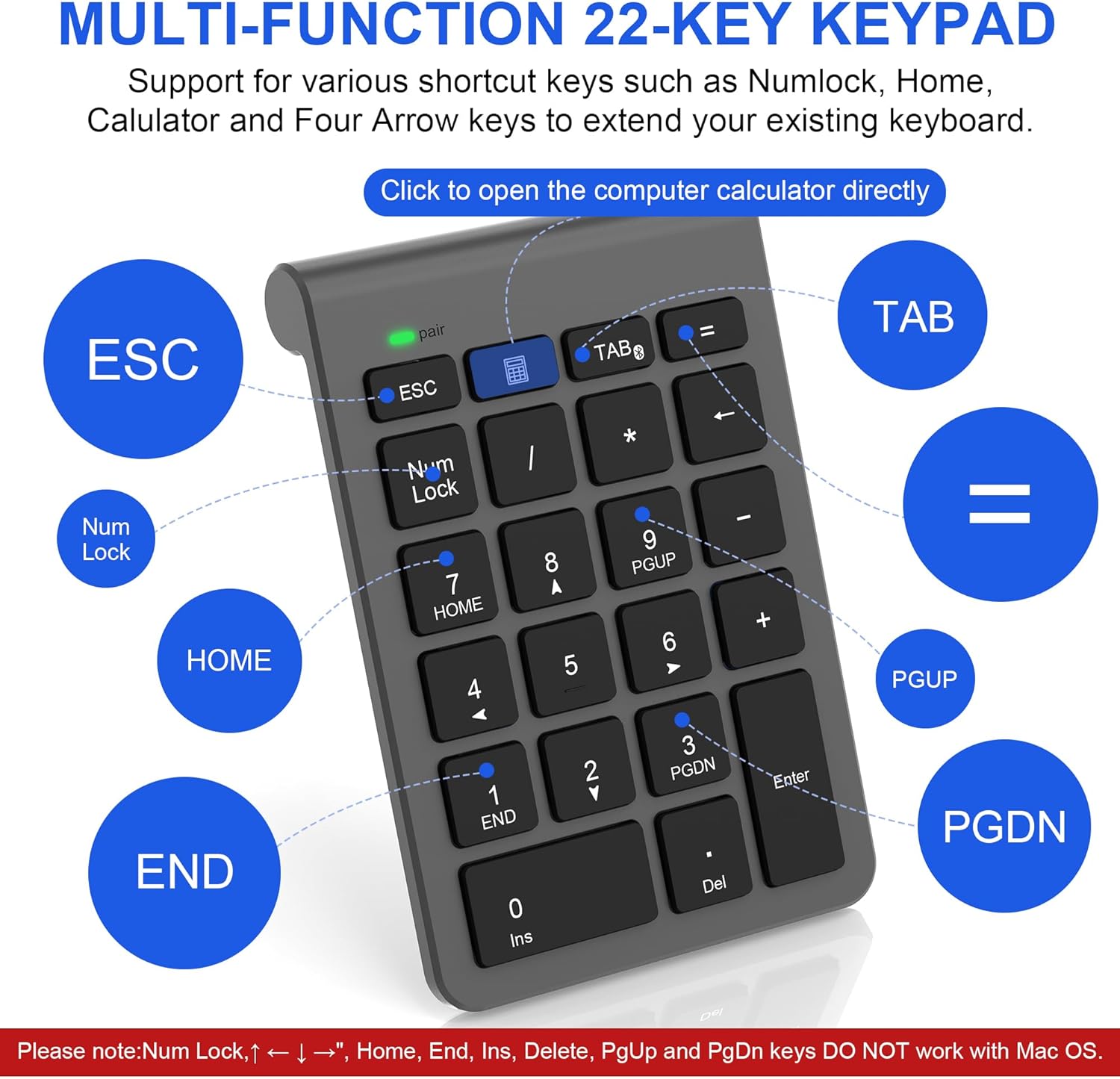 • [Многофункционална 22-клавишна цифрова клавиатура] В допълнение към клавишите NumLock/ESC/Tab/Del, тя е оборудвана с пряк път за стартиране на калкулатора. Оптималният дизайн елиминира липсата на цифрово въвеждане на преносими компютри и значително подобрява въвеждането на данни и ефективността на Excel.
