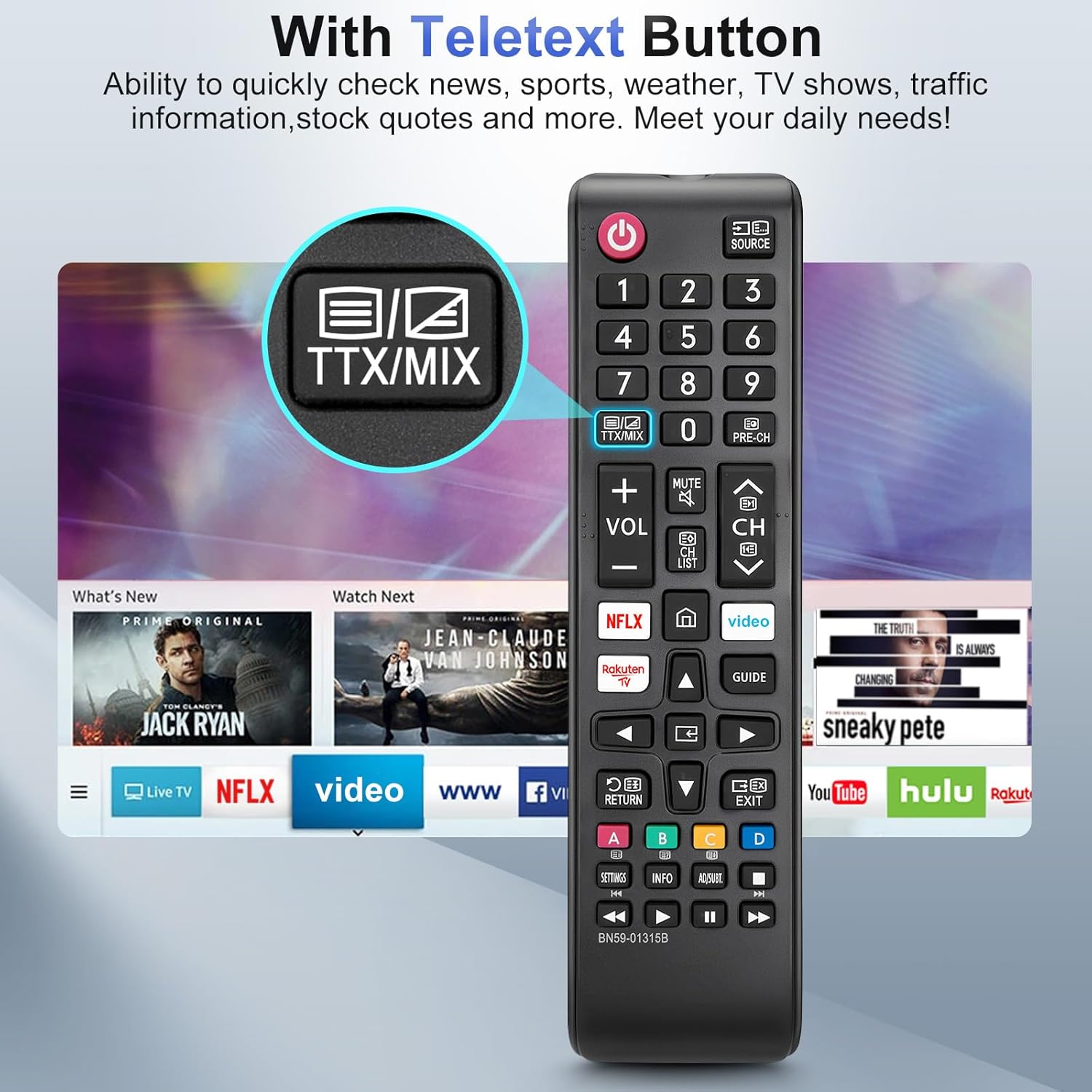 • Резервно дистанционно управление за оригинално дистанционно управление на Samsung: съвместимо с оригинални модели дистанционни управления за телевизори Samsung, като BN59-01315B, BN59-01312A, BN59-01266A, BN59-01259E, BN59-01330A, BN59-01329A, BN59-01298A, BN59. -0129 2A, BN59-01241A, BN59-01293A, BN59-01357A, BN59-01199F, BN59-01199G, BN59-01301A и BN59-01289A, BN59-01363A, BN59-01175N, BN59-01 5247A, BN59-01268D, AA59-00743A, BN59-01175B, AA59-00603A, AA59-00622A, AA59-00496A, AA59-01180A, AA59-00666A, AA59-00600. . Няма нужда да проверявате номера на модела на вашия телевизор - просто работи!