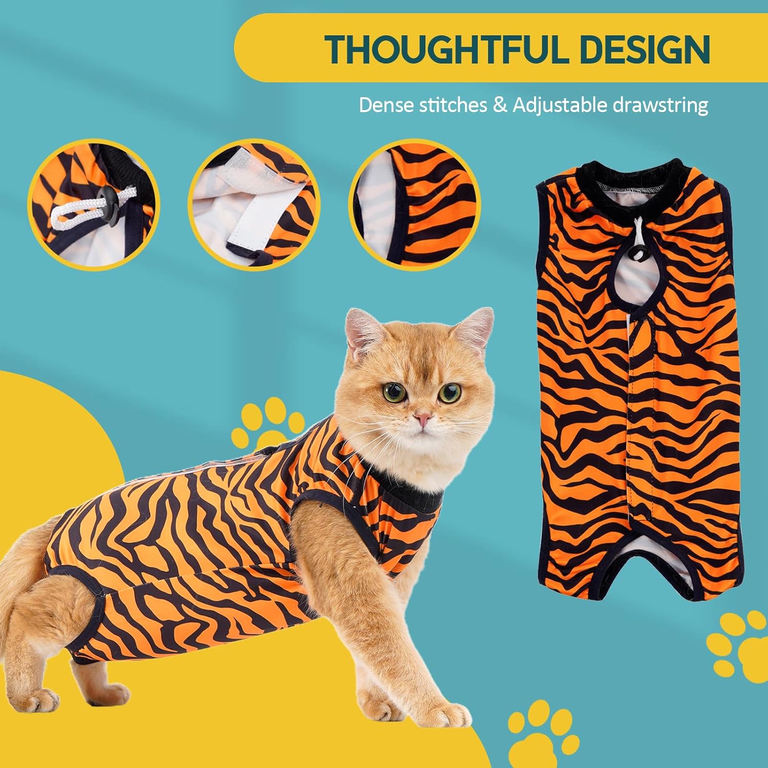 Боди за котки Avont, костюм за възстановяване след операция, дрехи от модал, кастрация, възстановяване след стерилизация, защитен костюм от отбиване/облизване, за коремни рани или кожни заболявания, M Plus, Tiger