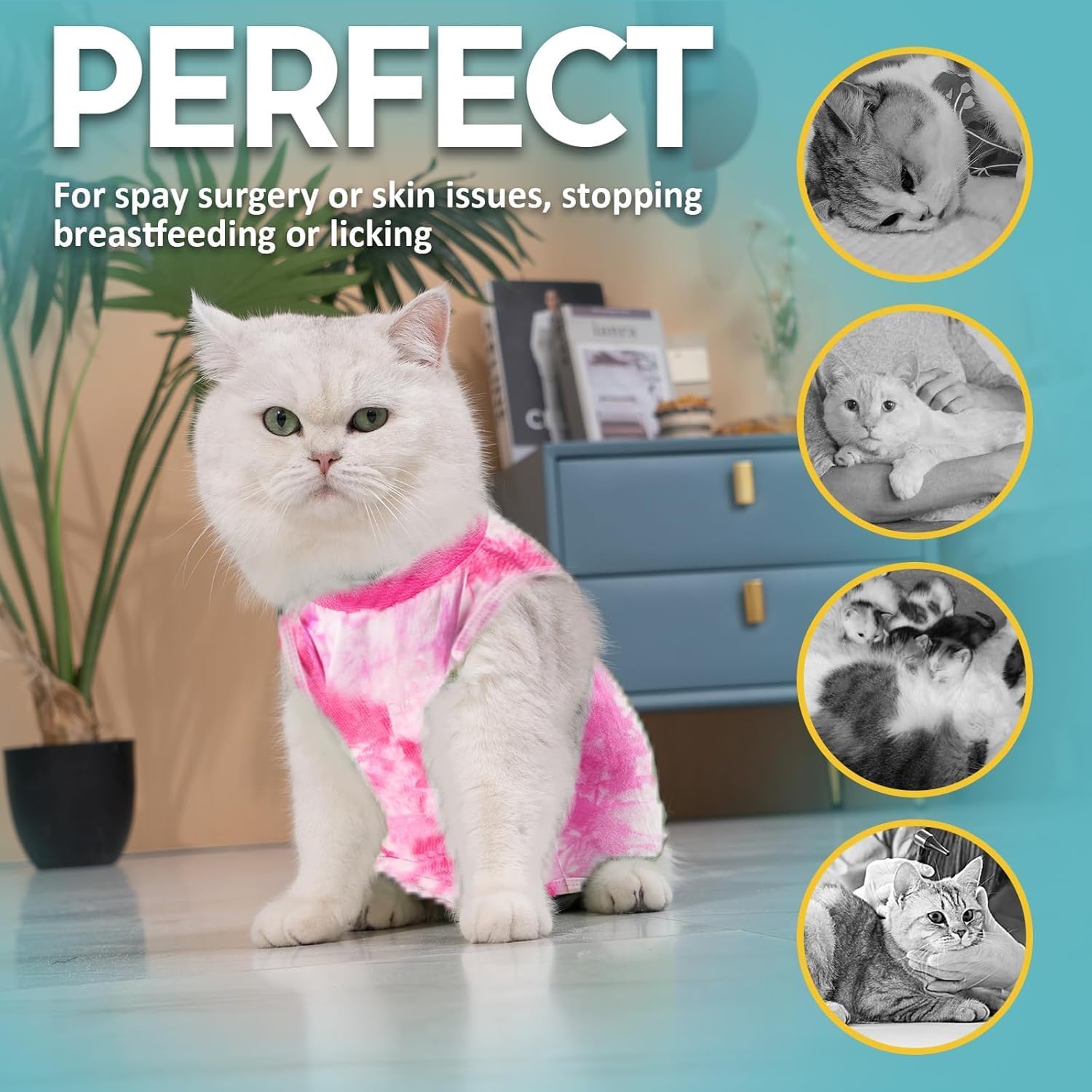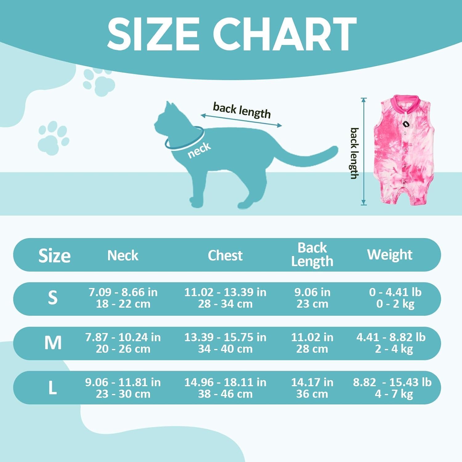 Боди за котки Avont, костюм за възстановяване след операция, дрехи от модал, за кастрация, възстановяване след стерилизация, предпазен костюм от отбиване/облизване, за коремни рани или кожни заболявания, размер S, цвят Tie Dye Orange