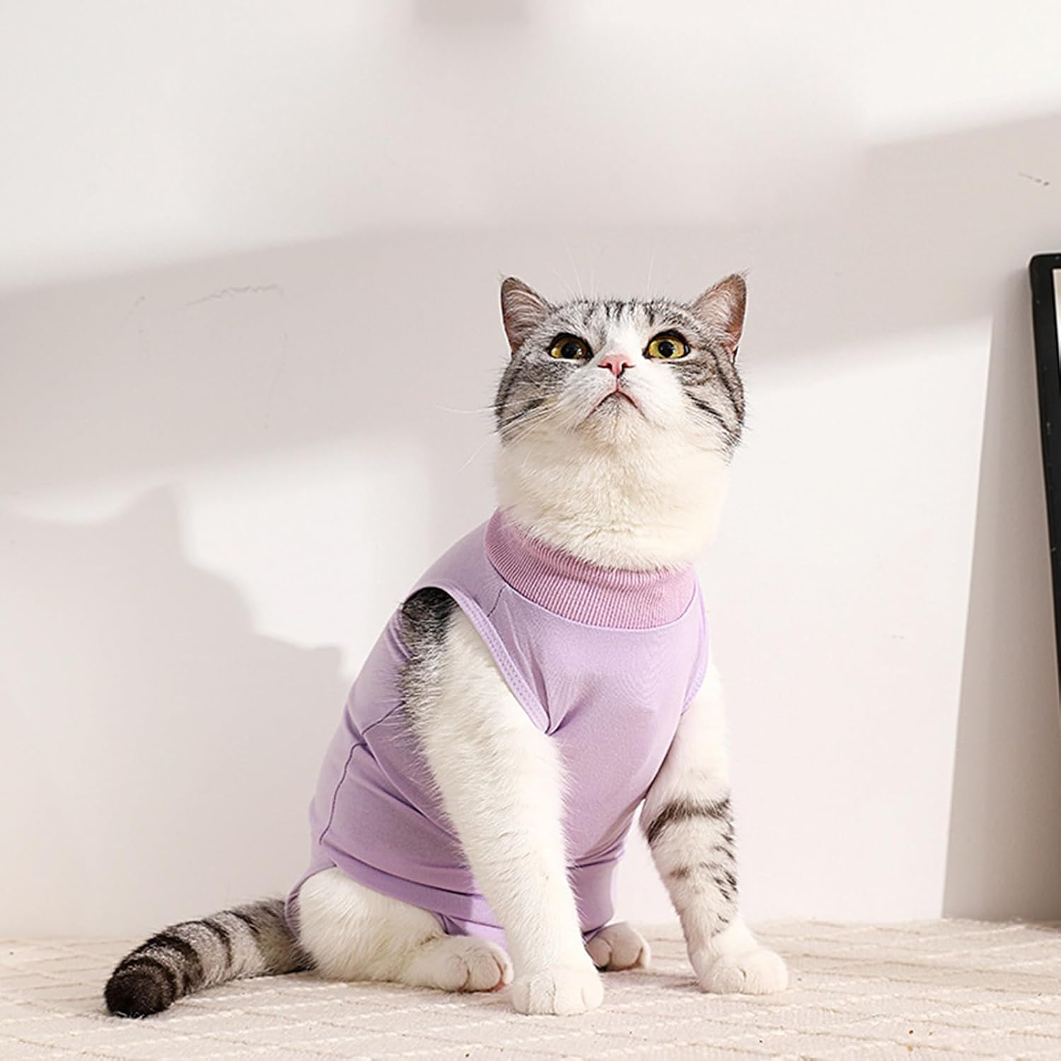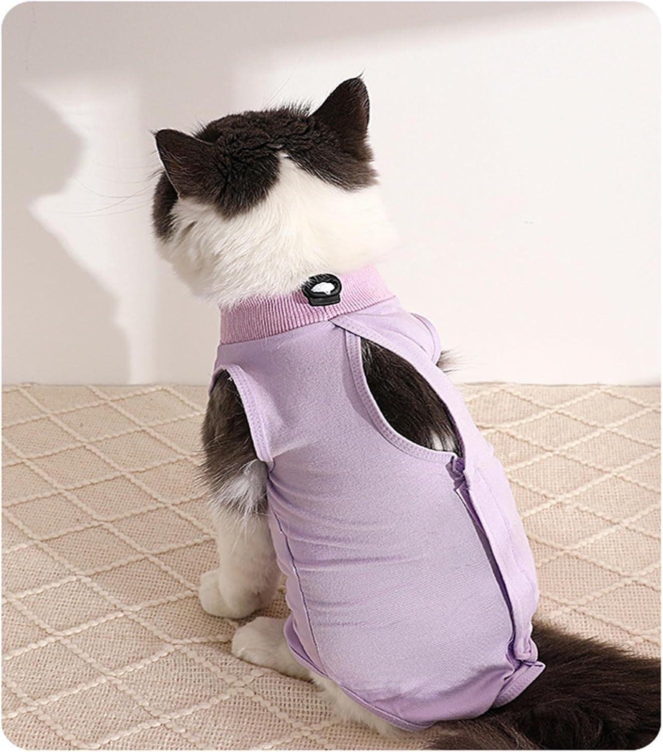 Боди за котки след операция, стерилизация, гащеризон за котки след операция за коремни рани или кожни заболявания, предотвратяващ облизването на рани (виолетов, M)
