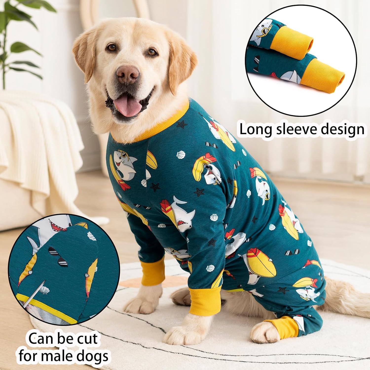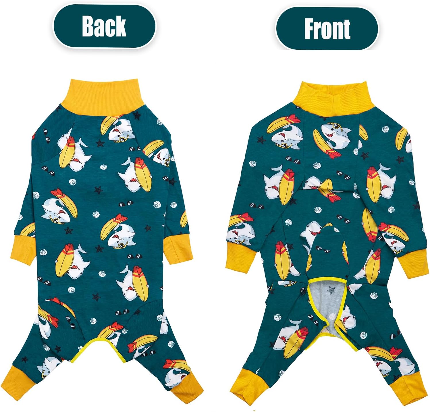 • Покриване на цялото тяло: Този боди с дълъг ръкав осигурява допълнителен комфорт за вашето куче. Той не само предпазва наранените зони, но и крайниците на кучето. Висококачественият, дишащ материал е удобен и като пижама, и осигурява топлина, когато времето е малко по-хладно.