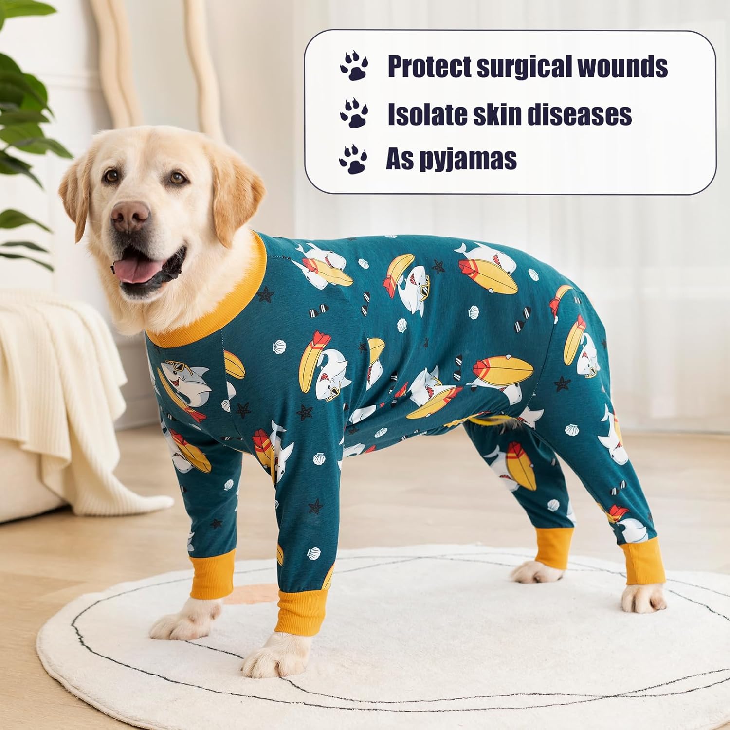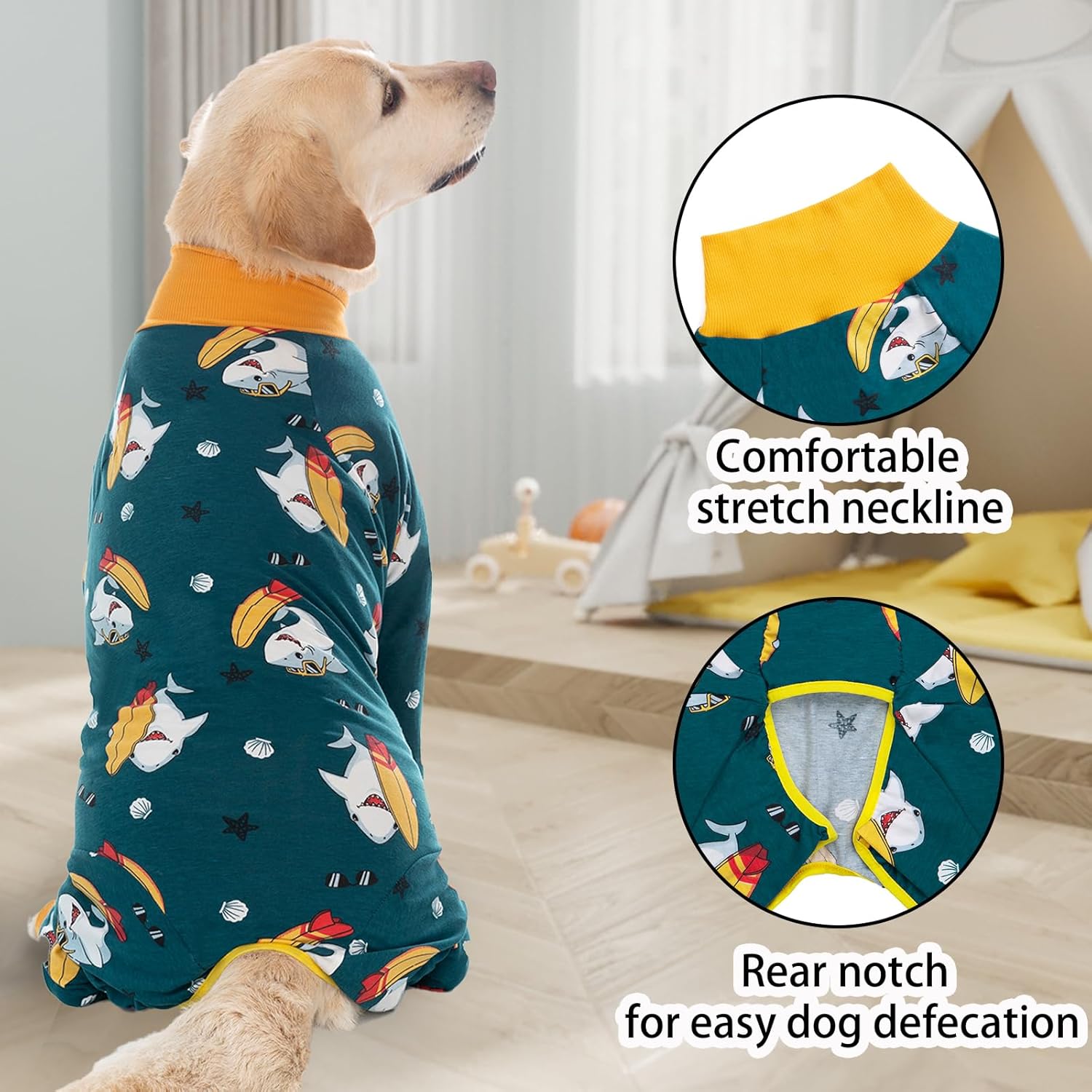 • Алтернатива на кучешки конус: Този кучешки костюм е чудесна алтернатива на кучешкия нашийник, който ограничава зрението и свободата на движение на вашето куче. С този костюм кучето ви може лесно да яде, пие и да играе!