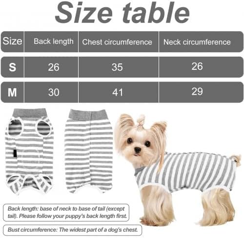 • Подходящ размер: Нашият регулируем следоперативен костюм за кучета се предлага в 2 размера, S и M, за да отговори на вашите нужди и да е подходящ за всички типове тяло. Моля, вижте таблицата с размери, за да изберете правилния размер.
