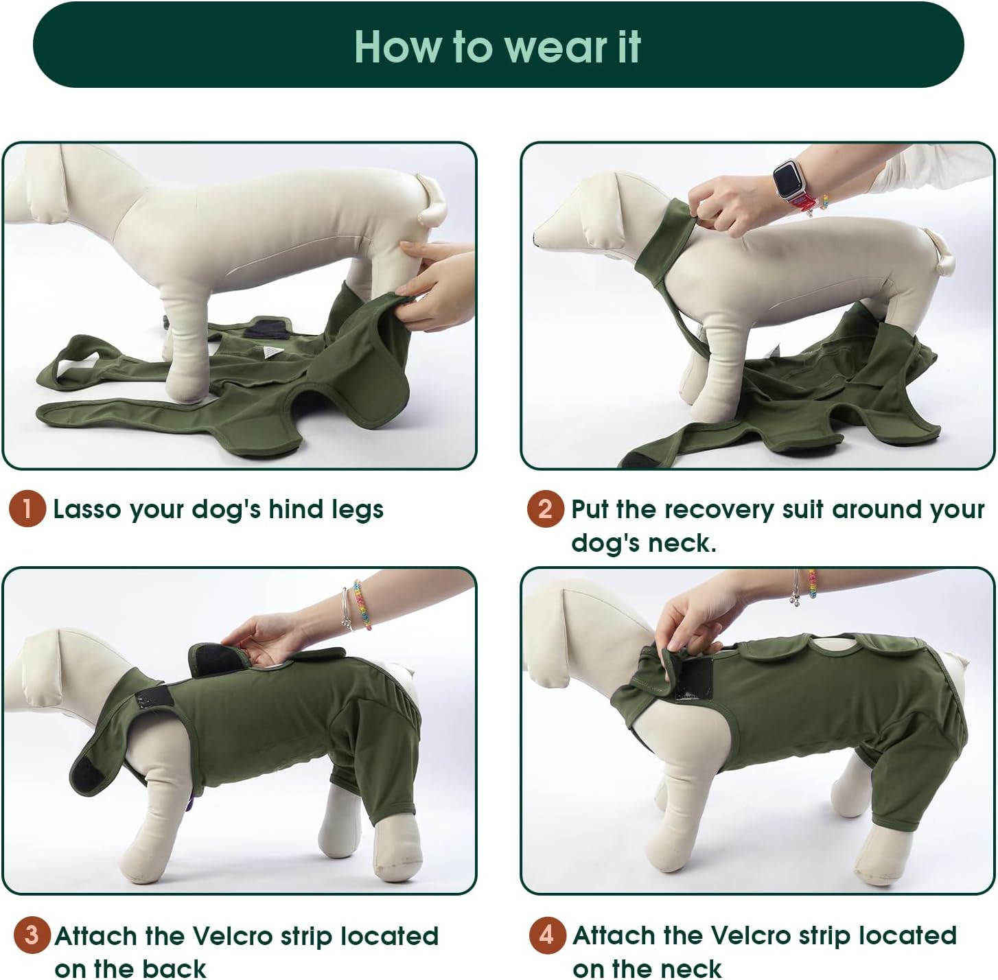 Боди за кучета Kuoser - Костюм за възстановяване със защита за кучета след операция, кастрация или грижа за рани - Боди против влага за женски и мъжки кучета - Зелен S