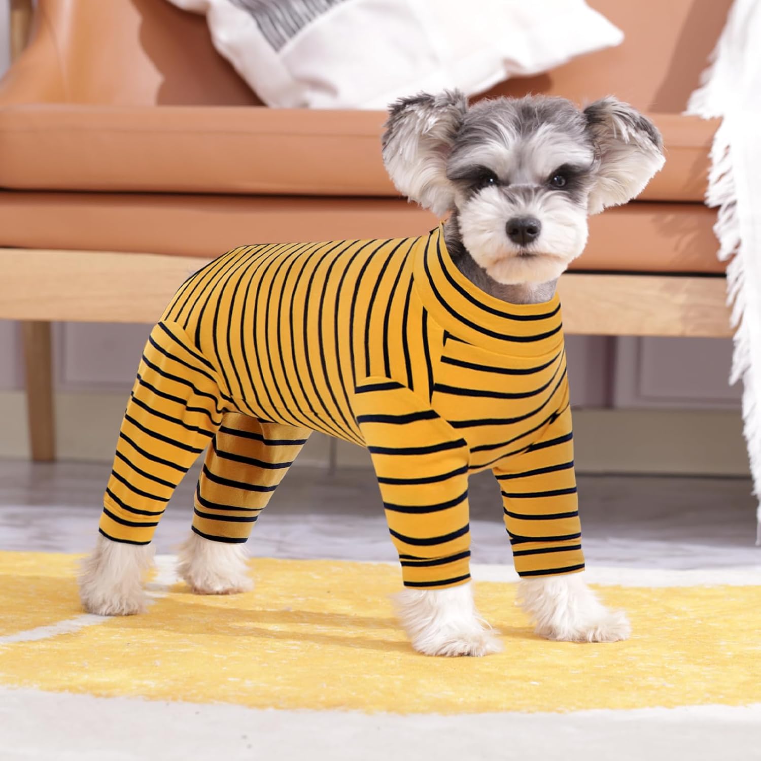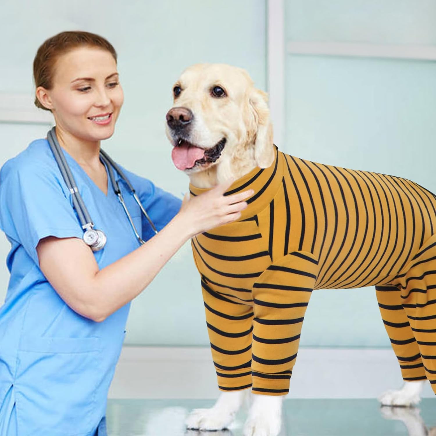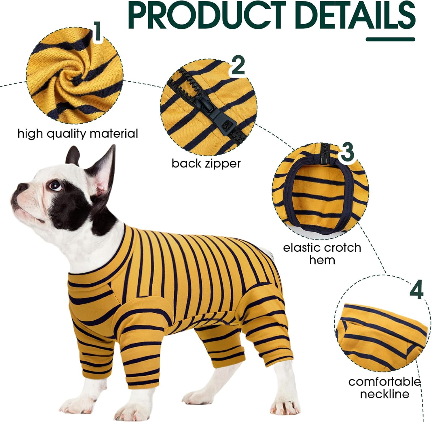 • Дизайн с дълъг ръкав: Този гащеризон за кучета с дълъг ръкав покрива по-голямата част от козината на вашето куче, предотвратявайки разпръскването на косми и поддържайки дома ви чист. Когато се използва на открито, той предпазва кучето ви от наранявания, кожни заболявания, прегряване и алергично облизване.