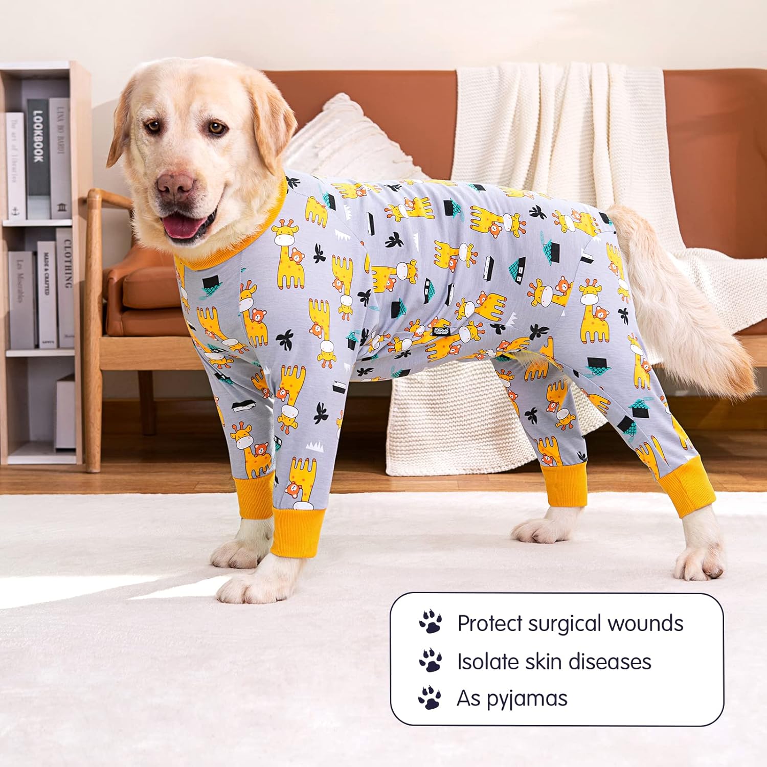 • Покриване на цялото тяло: Този боди с дълъг ръкав осигурява допълнителен комфорт за вашето куче. Той не само предпазва наранените зони, но и крайниците на кучето. Висококачественият, дишащ материал е удобен и като пижама, и осигурява топлина, когато времето е малко по-хладно.