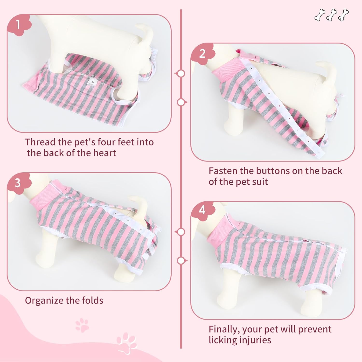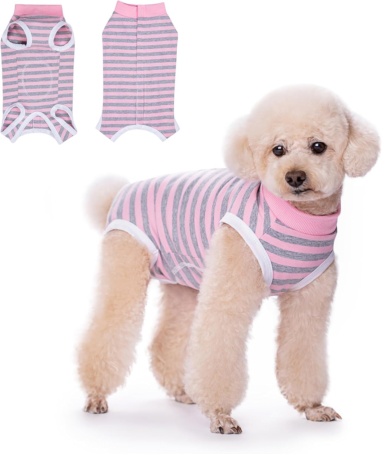 Боди за кучета след операция, боди за кастрация/стерилизация на кучета, костюми за защита от рани за женски и мъжки кучета, професионален костюм за възстановяване на домашни любимци, дишащ хирургически боди за кучета (розов и сив, размер S)