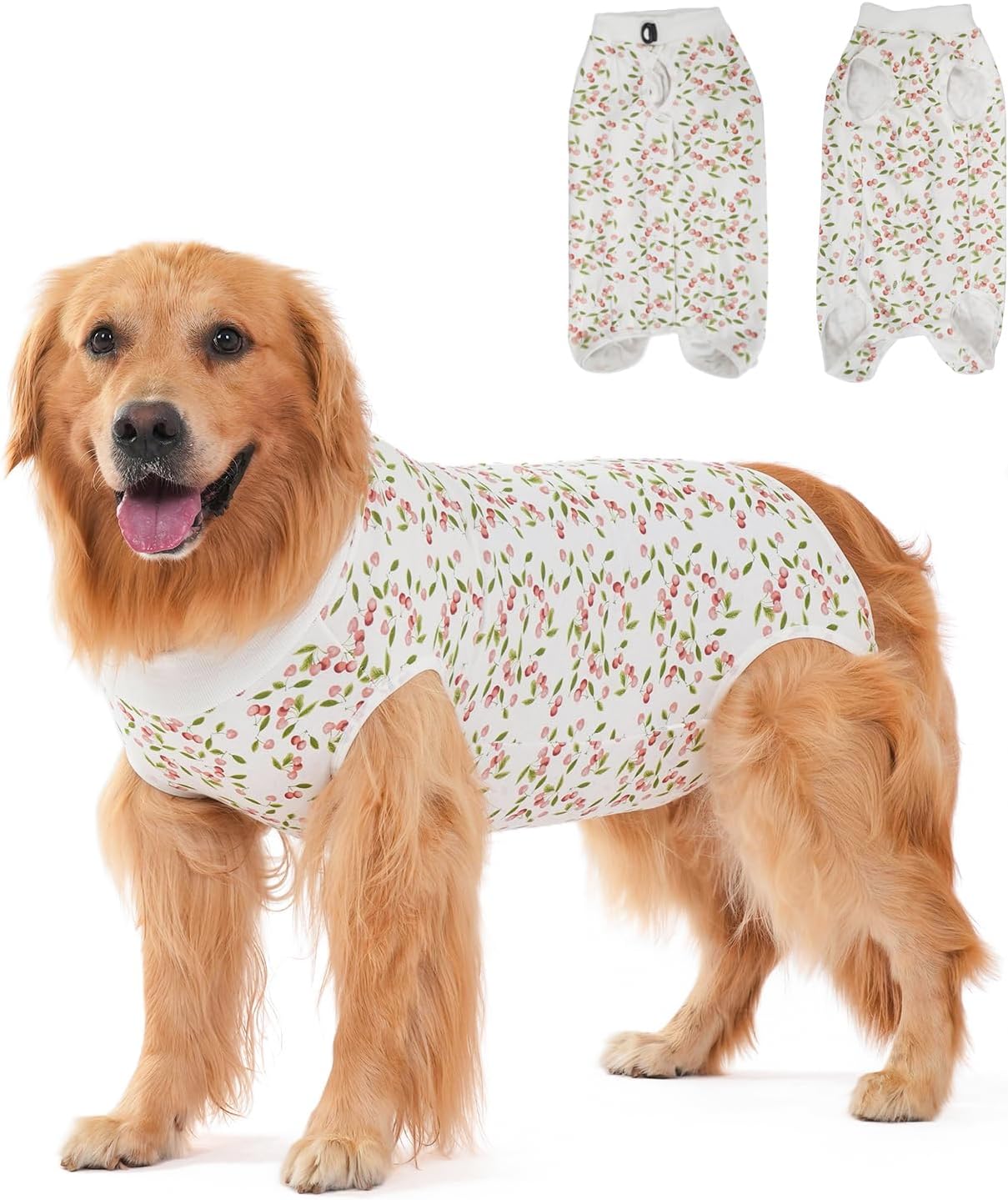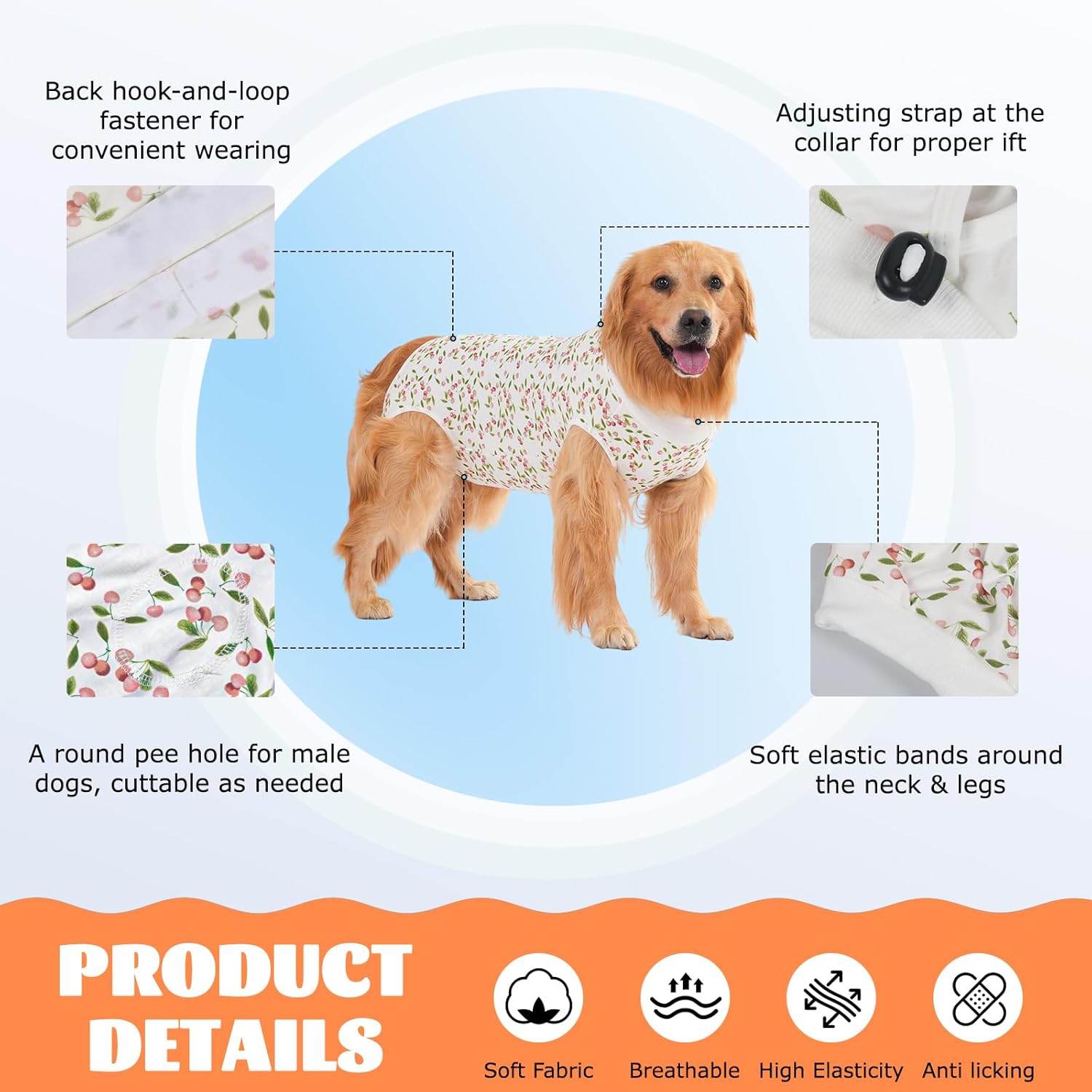 Боди за кучета след операция, боди за кучета след кастрация, мъжко куче, женско куче, дишащ еднокомпонентен костюм за защита от рани за кучета след операция, боди за кучета за женски кучета, защита от облизване за кучета (Бяло-Черешово, XXL)
