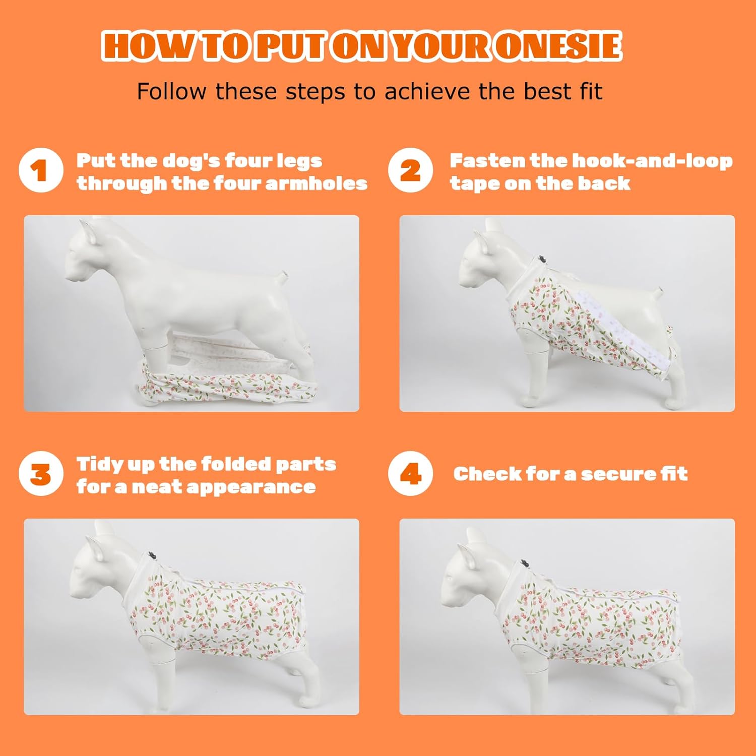 • Лесни за носене – В сравнение с традиционните закопчавания с копчета, тези следоперативни бодита за кучета се отличават с иновативен дизайн на закопчалка тип „велкро“ на гърба, което ги прави по-лесни за обличане и сваляне и позволява удобно наблюдение на раната. Това елиминира досадната задача за закопчаване на десетки копчета.