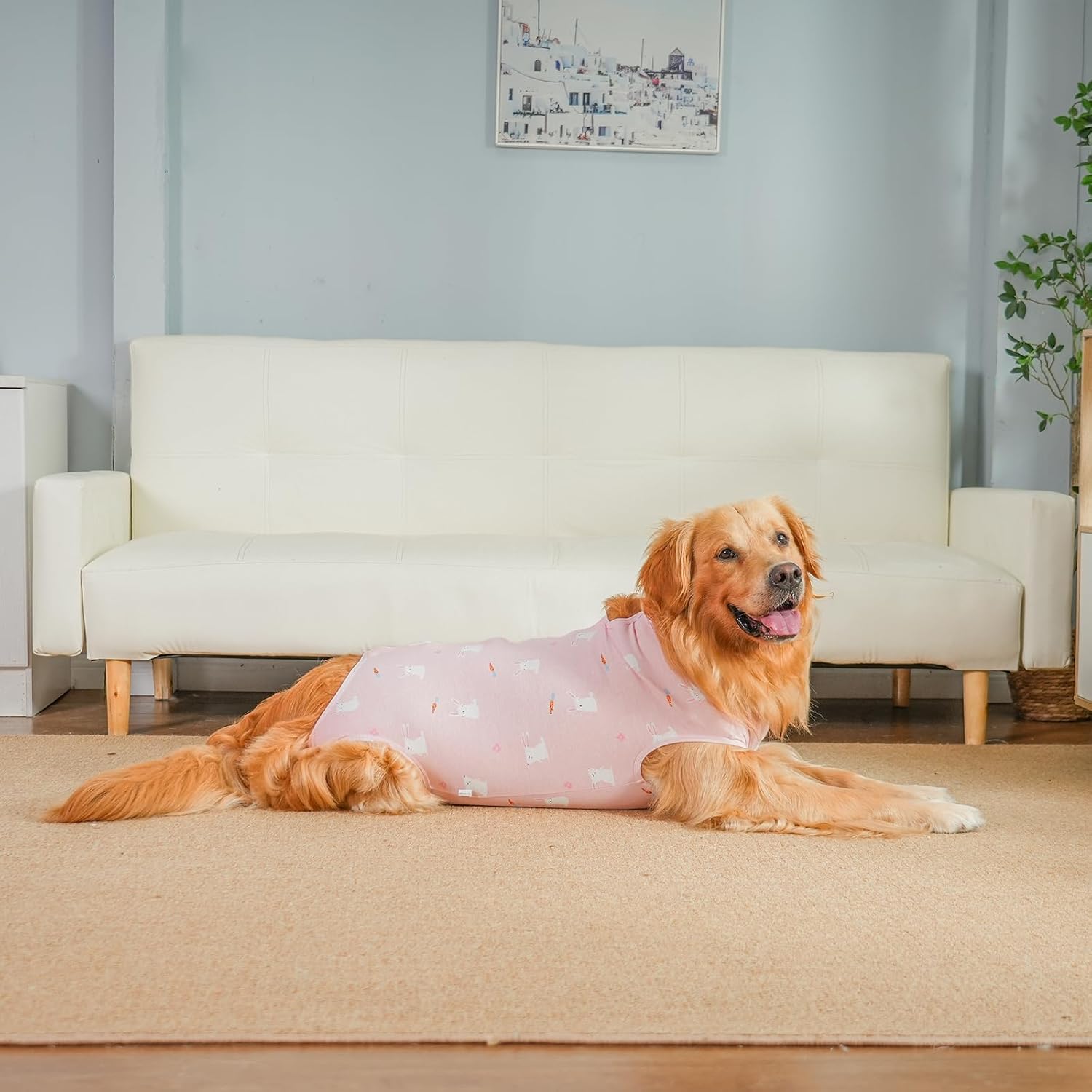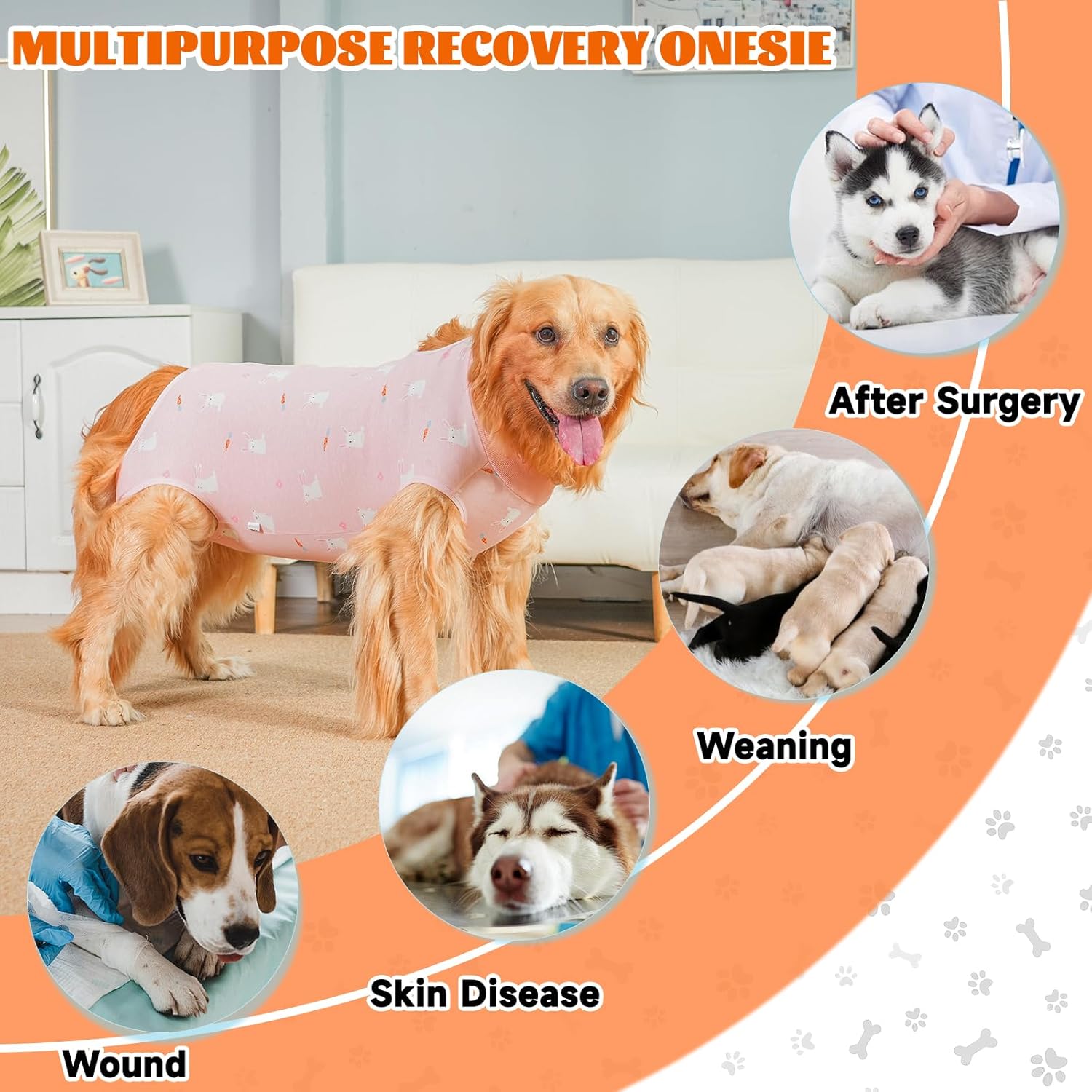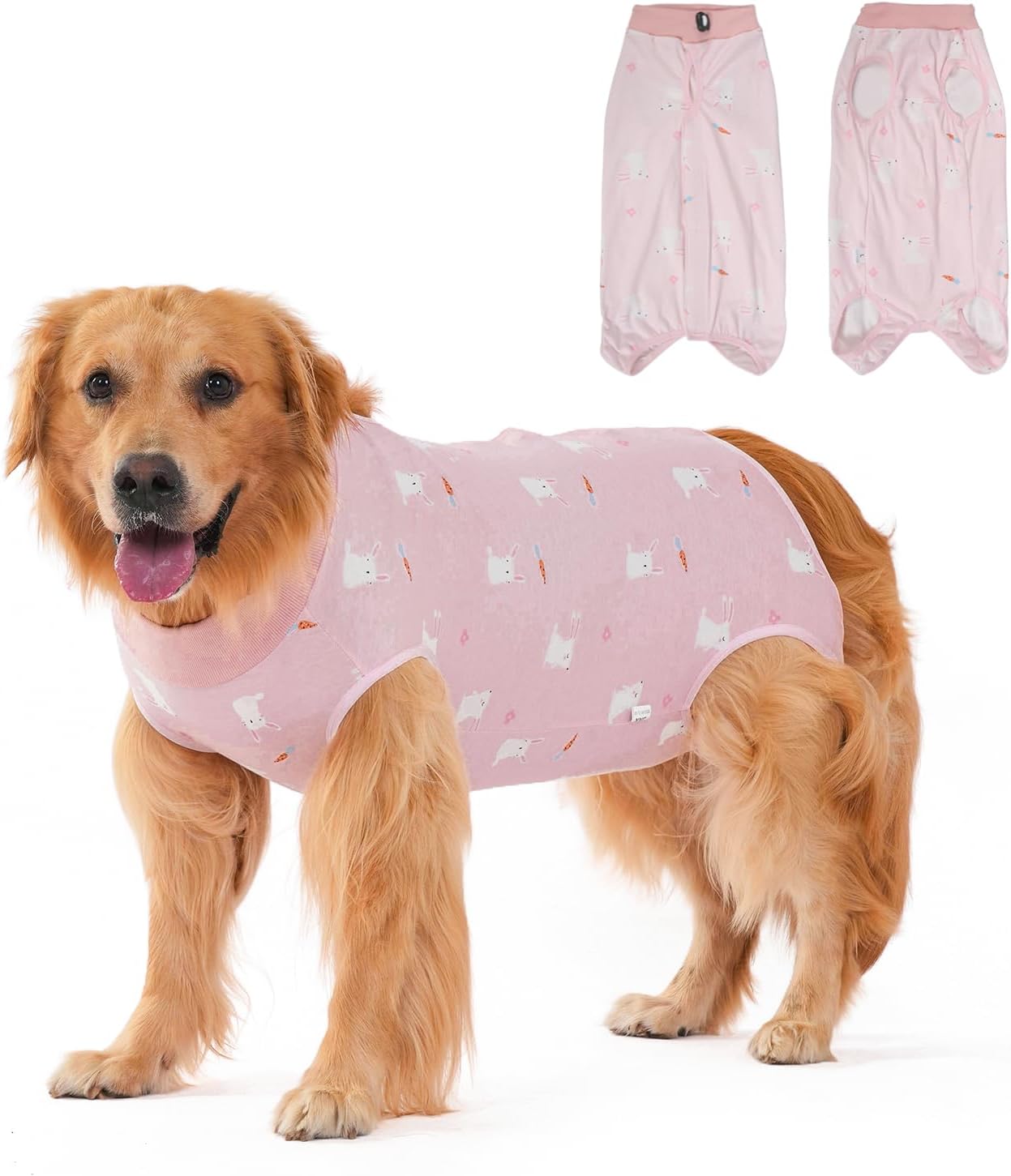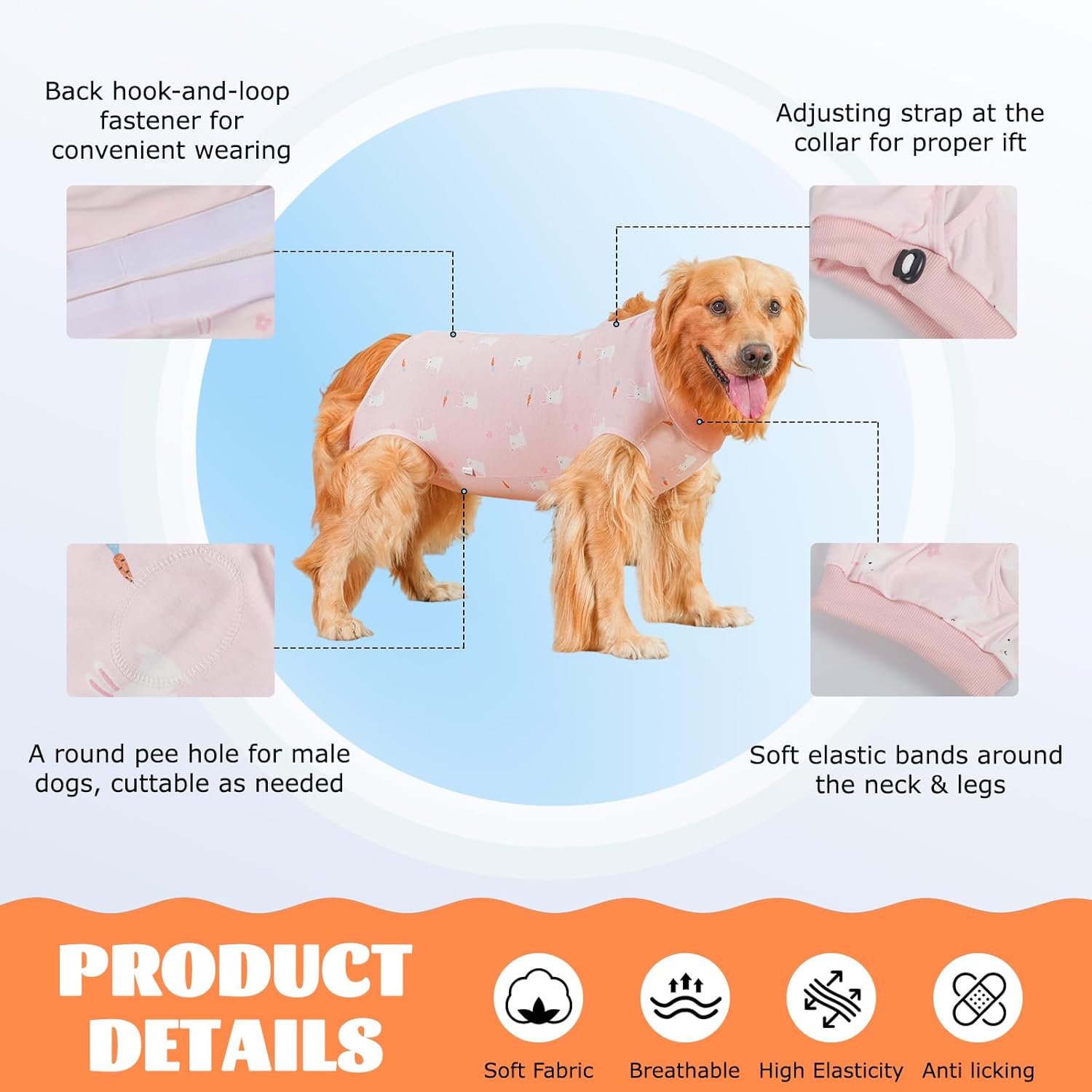 Боди за кучета след операция, боди за кучета след кастрация, мъжко куче, женско куче, дишащ еднокомпонентен костюм за защита от рани за кучета след операция, боди за кучета за женски кучета, защита от облизване за кучета (розов заек, XS)