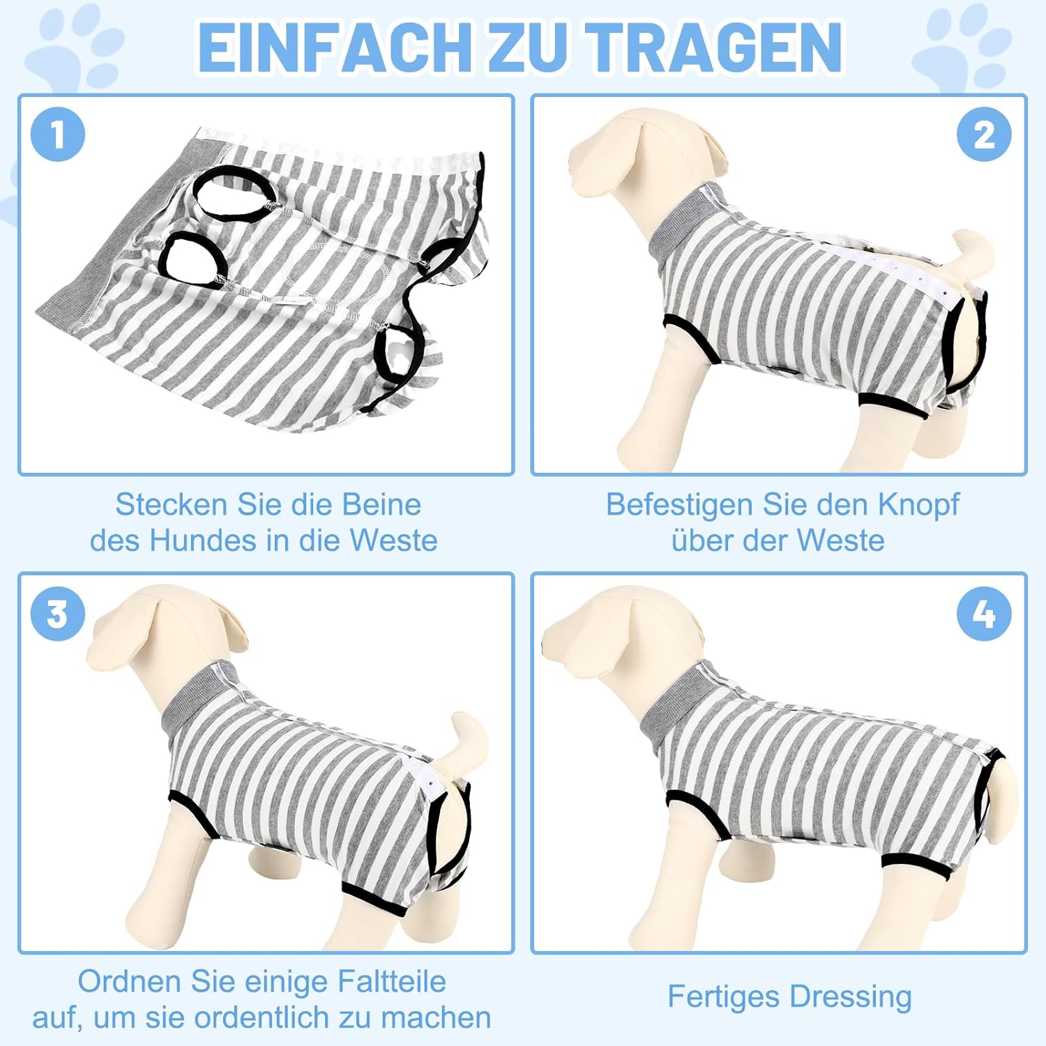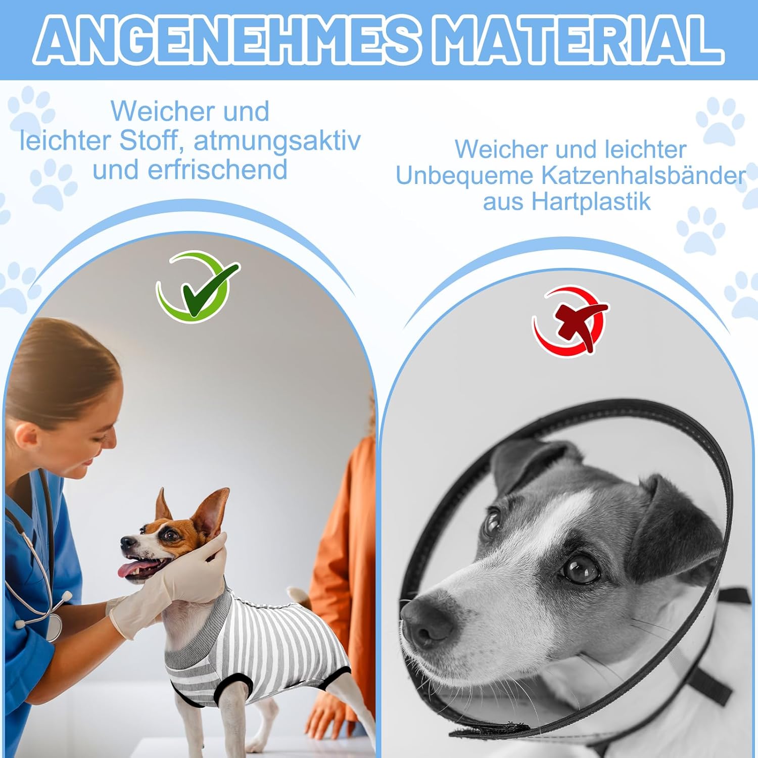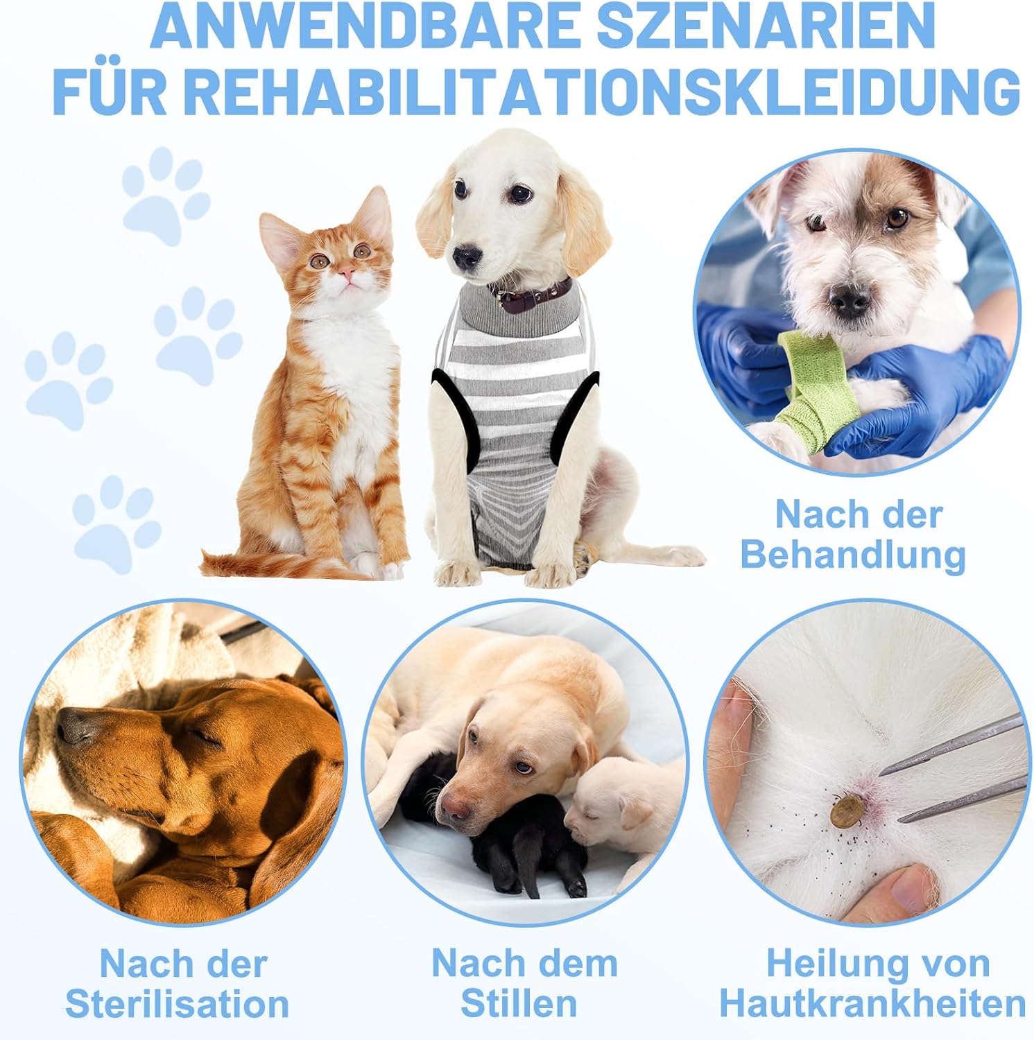 • Алтернативен конусен нашийник: Използвайте нашия следоперативен костюм за кучета, за да защитите първо коремните рани на вашия домашен любимец, след това да увеличите мобилността му и да му попречите да ги облизва. По-удобен и гъвкав от конусовидния нашийник.