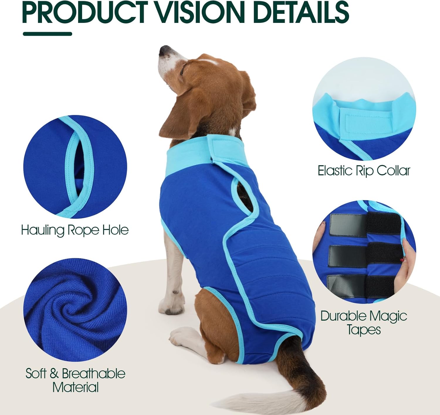 Боди за кучета след операция Kuoser, регулируем боди за женски кастрирани кучета, дишащ боди за женски кучета след операция, боди за кучета след операция, алтернативна ортеза за врата, син, размер L