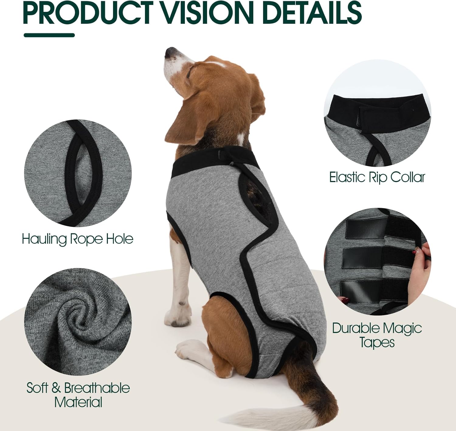 Боди за кучета след операция Kuoser, регулируем боди за женски кастрирани кучета, дишащ боди за женски кучета след операция, боди за кучета след операция, алтернативна ортеза за врата, сив, XS