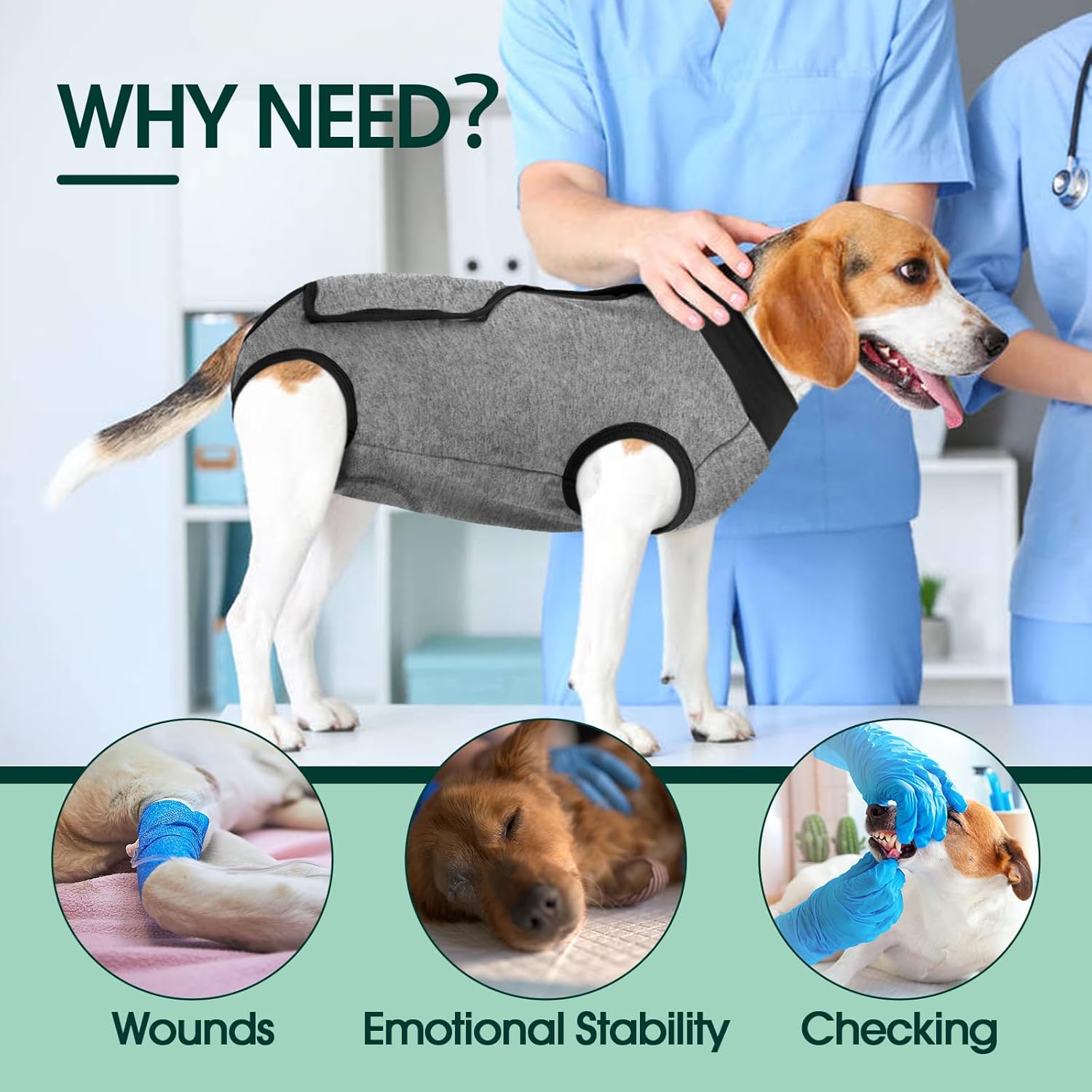Боди за кучета след операция Kuoser, регулируем боди за женски кастрирани кучета, дишащ боди за женски кучета след операция, боди за кучета след операция, алтернативна ортеза за врата, сив, XXL