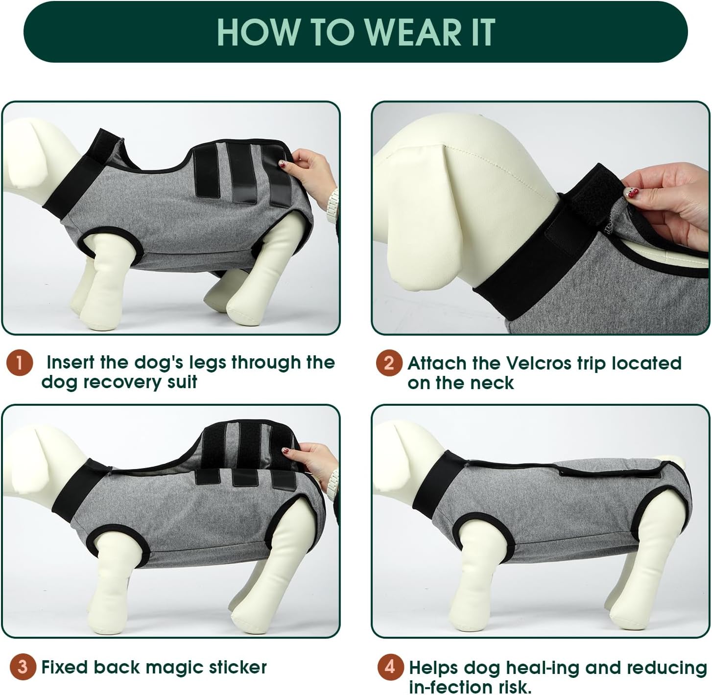 • Пълна защита след операция: Този следоперативен боди за кучета, подходящ за мъжки и женски кучета, предпазва шевовете и предотвратява одраскване или облизване. Подходящ за кастрация, стерилизация, наранявания, отбиване и обща грижа за рани – за по-бързо и безопасно заздравяване.