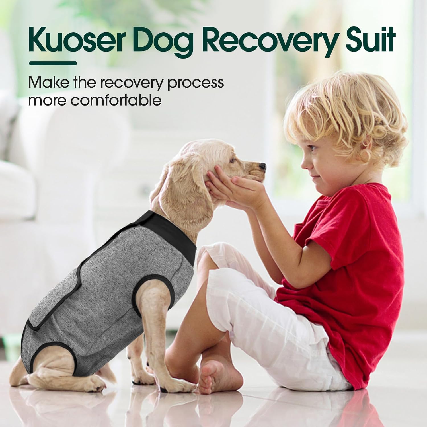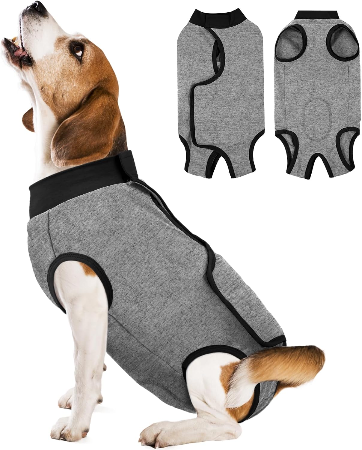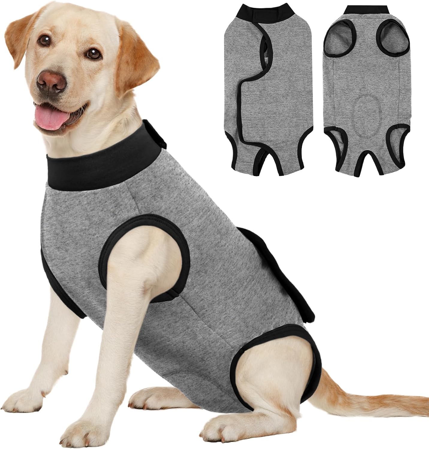 Боди за кучета след операция Kuoser, регулируемо боди за женски кастрирани кучета, дишащо боди за женски кучета след операция, боди за кучета след операция, алтернативна ортеза за врата, сив, размер S