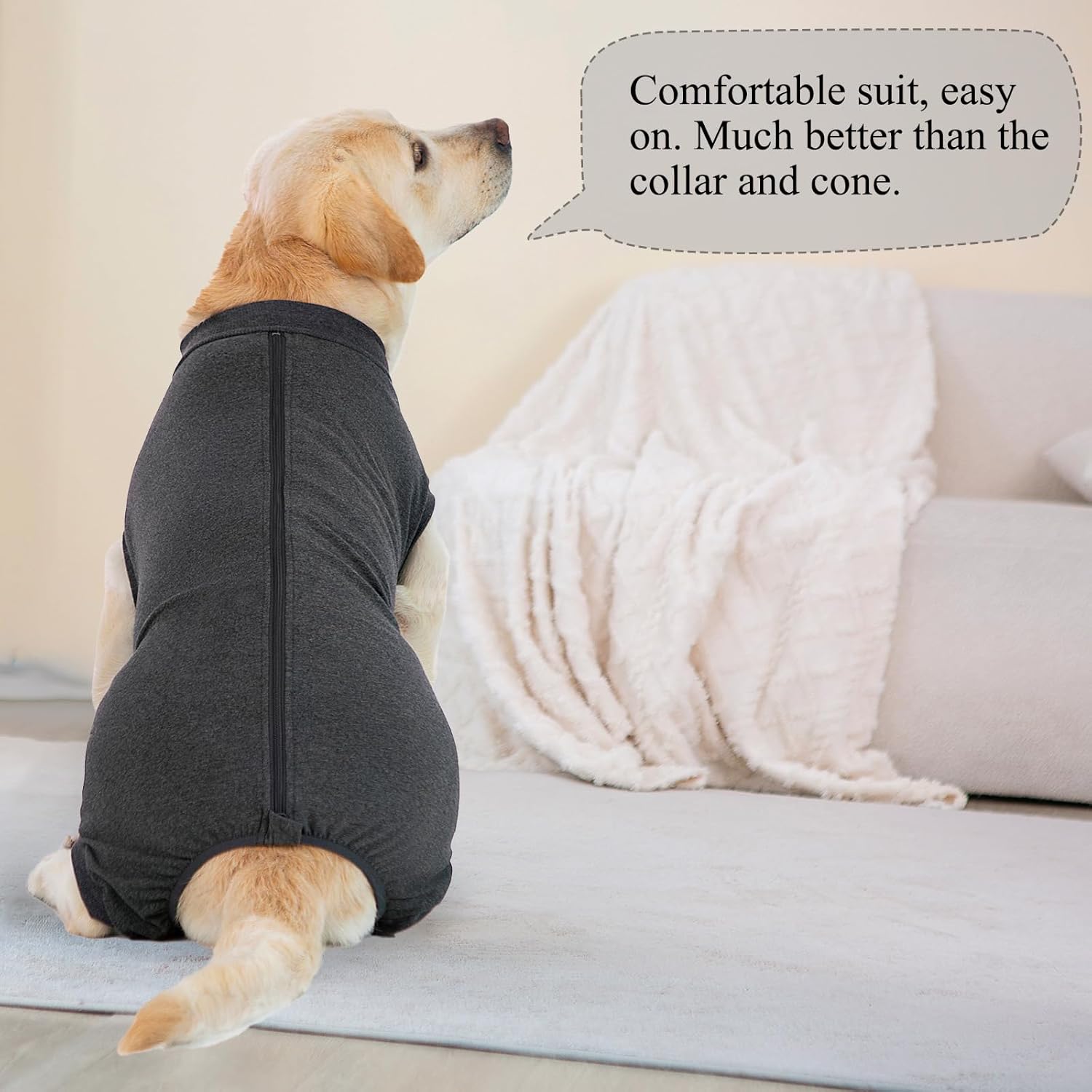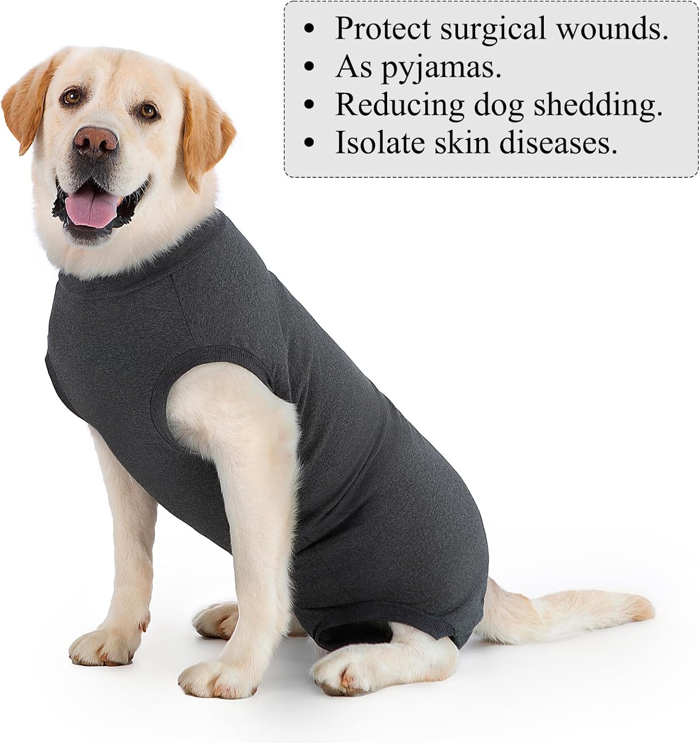 • Алтернатива на нашийниците и конусите: Този хирургически костюм за кучета е удобна и стилна алтернатива на традиционните конуси и шини за врата. Той предпазва кучето ви от одраскване или облизване на хирургическите рани, намалява риска от инфекция и насърчава по-бързото заздравяване.