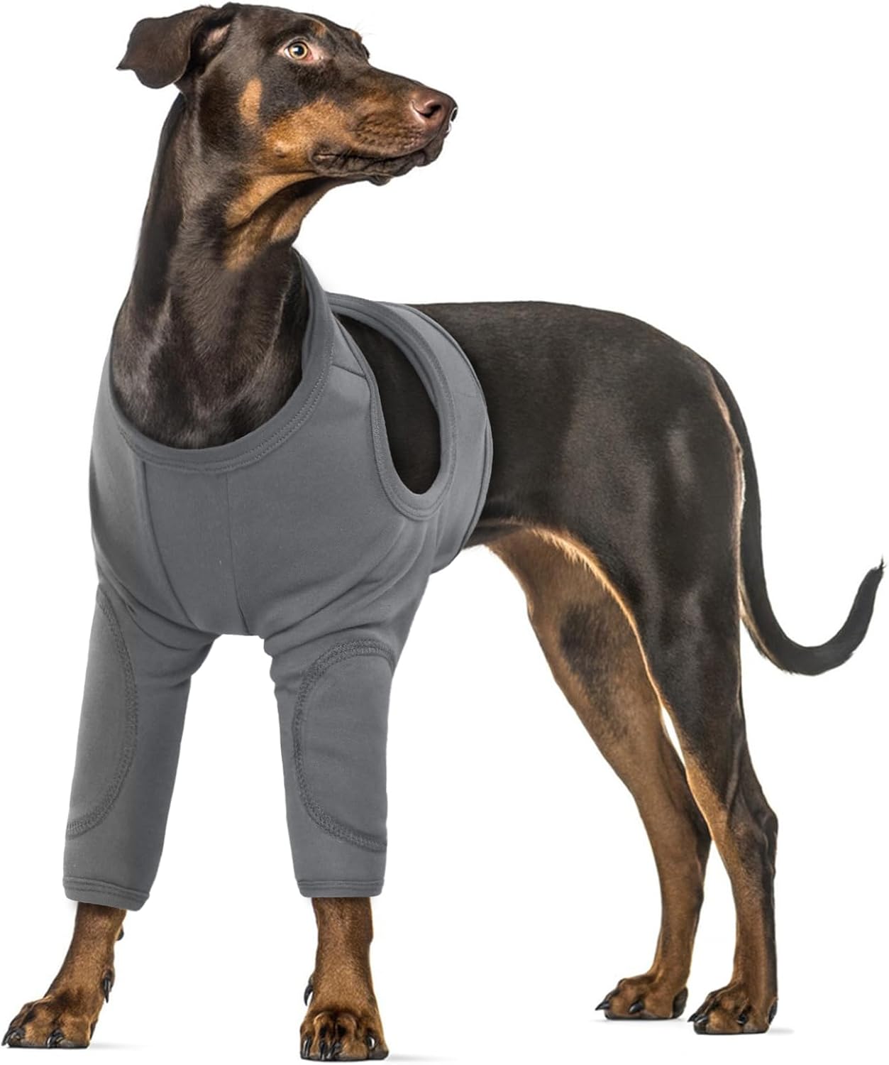 • 【Защита за предните крака】Нашият костюм за възстановяване на кучета е изработен от мек, еластичен памук, който се приспособява към тялото на вашето куче, осигурявайки оптимален комфорт и защита. Протекторите за крака могат да предотвратят облизването на кучетата и да предпазят ставите, раните, огнищата, инфекциите и кожните проблеми.