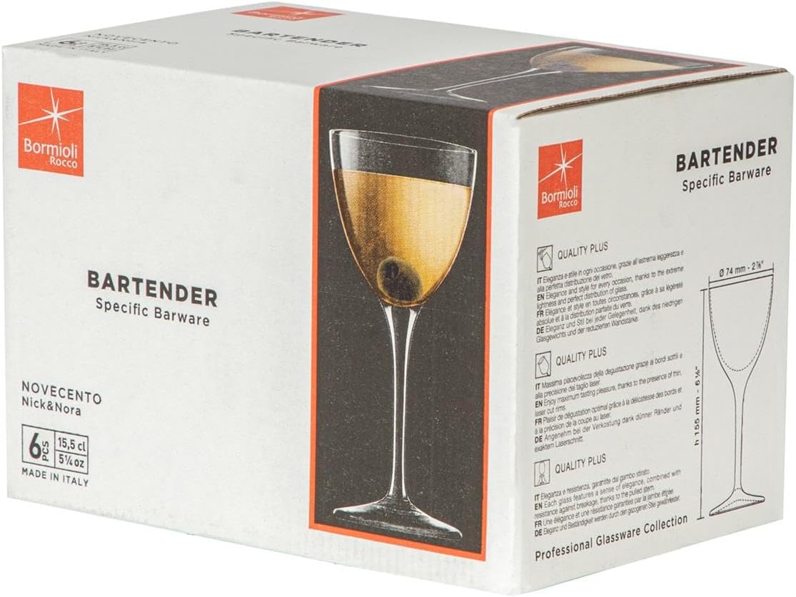 Bormioli Rocco 91281 Novecento Nick&Nora Комплект от 6 чаши, стъкло, cl15.5