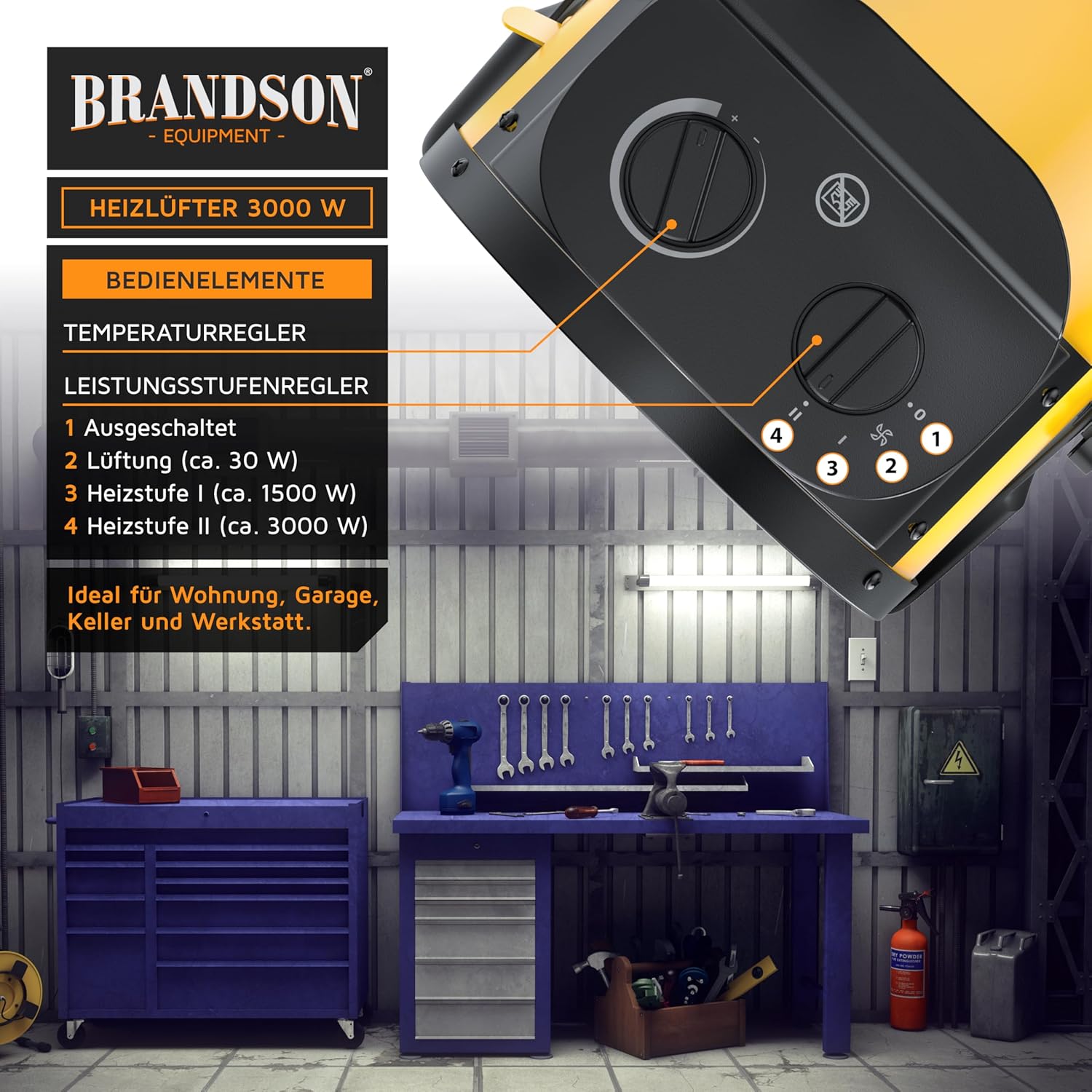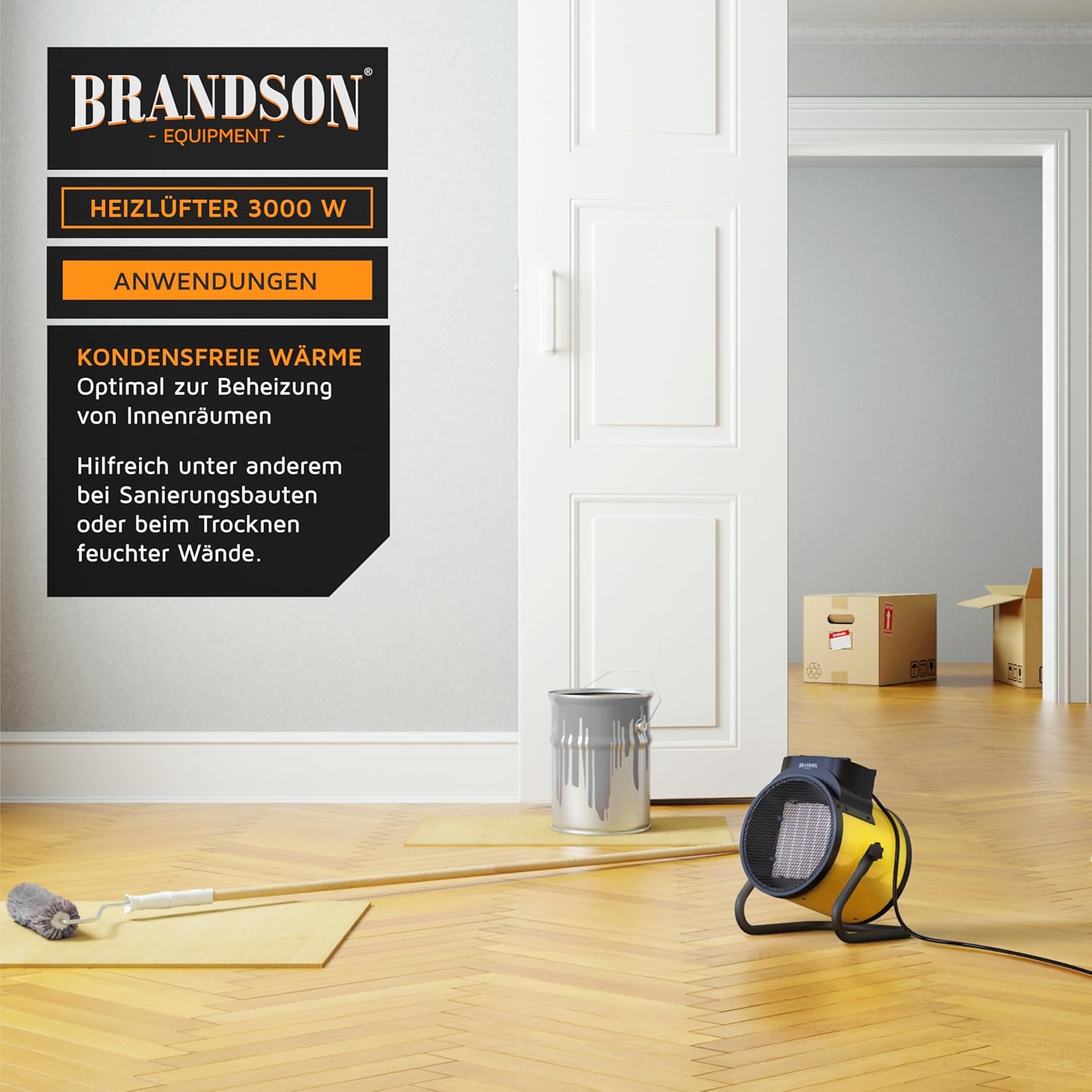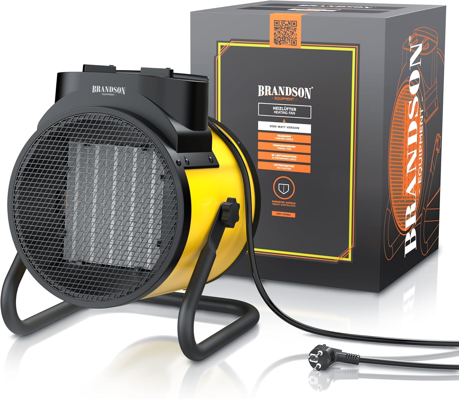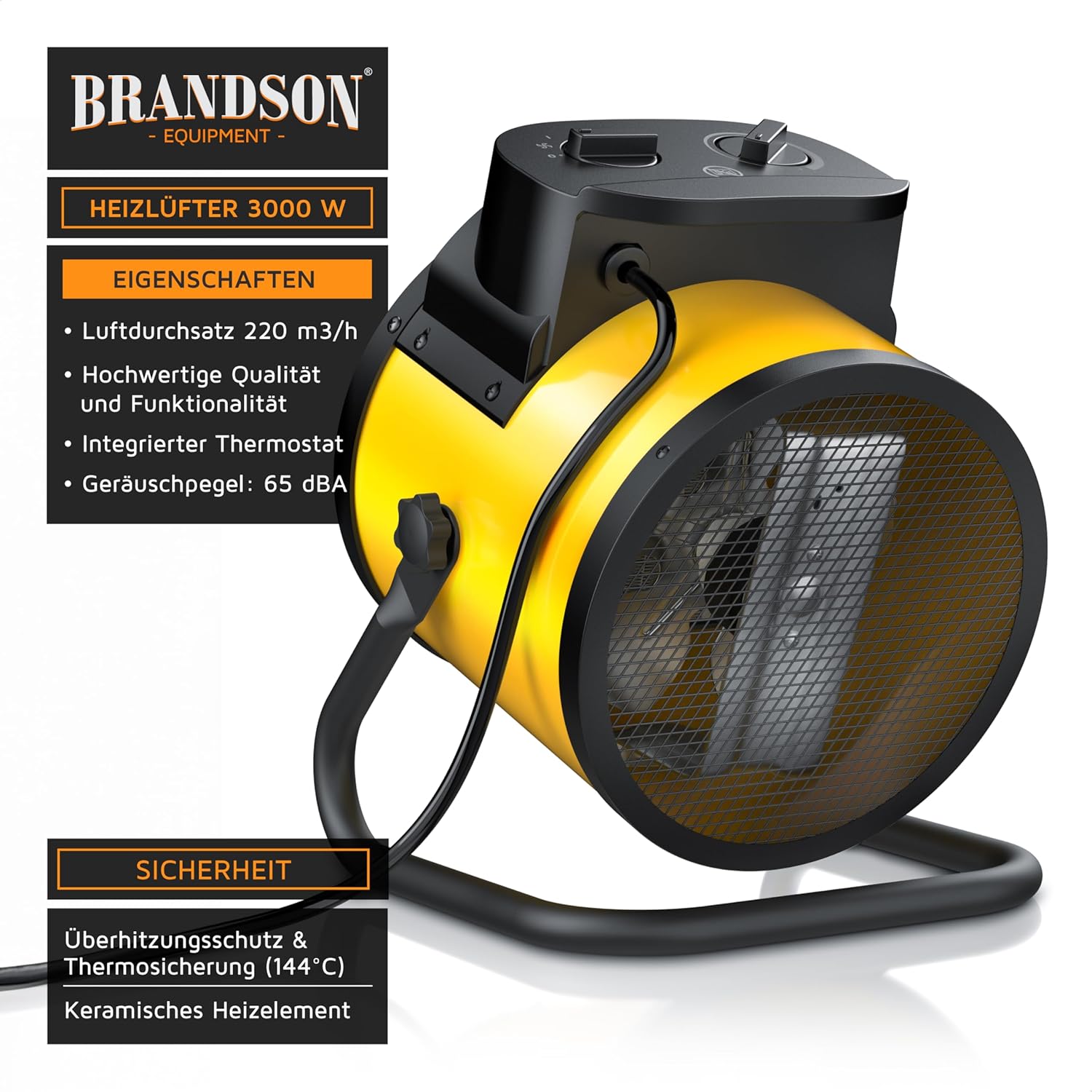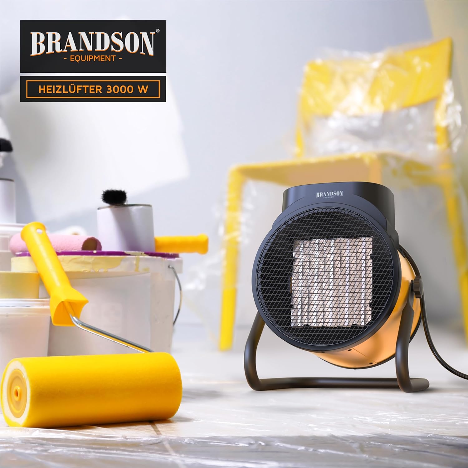 Brandson - Вентилаторен нагревател 3000 вата - Керамичен нагревател - Сушилня за помещения, строителна сушилня - Турбо електрически нагревател със защита от прегряване, изключително силен - за строителна площадка, домашен, работилничен, гаражен нагревател