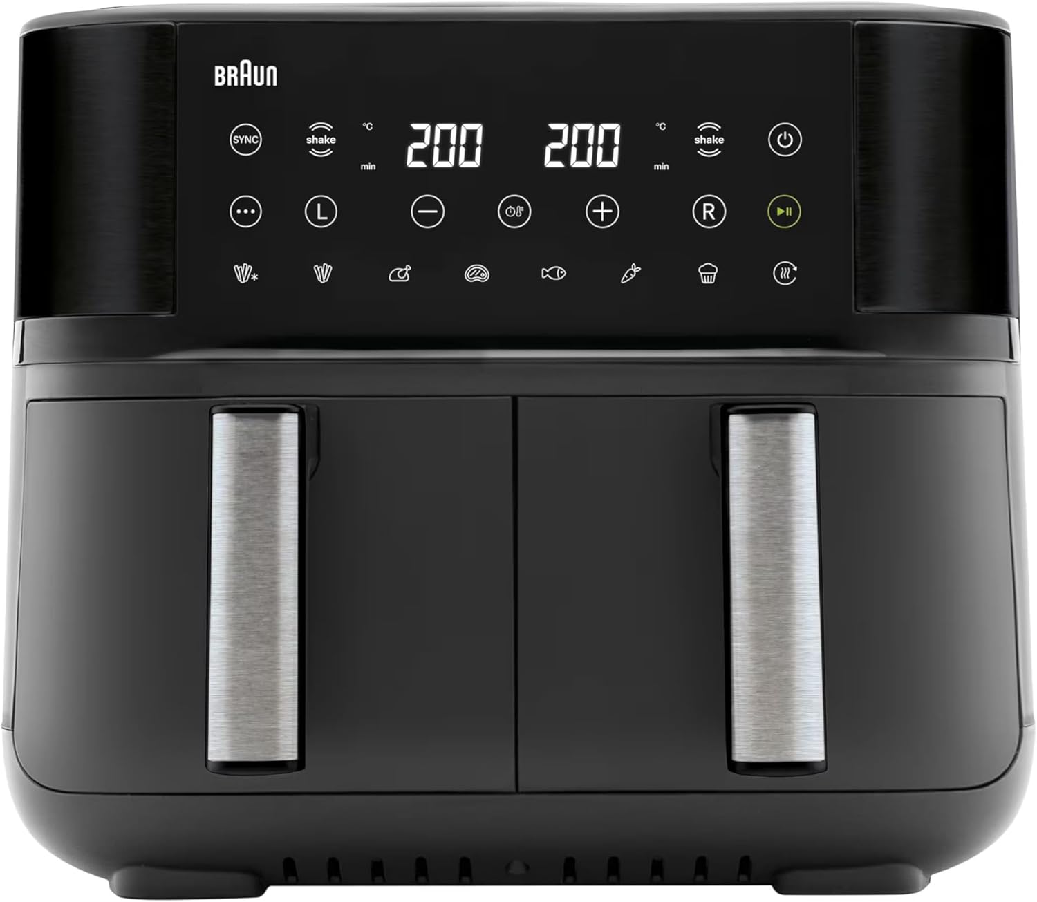 Braun MultiFry 5 HF5030 Цифров фритюрник с горещ въздух, 6 л, 80-220°, 8 програми, кошница, подходяща за съдомиялна машина, сензорно управление, 1700 W, технология RealAir, черен