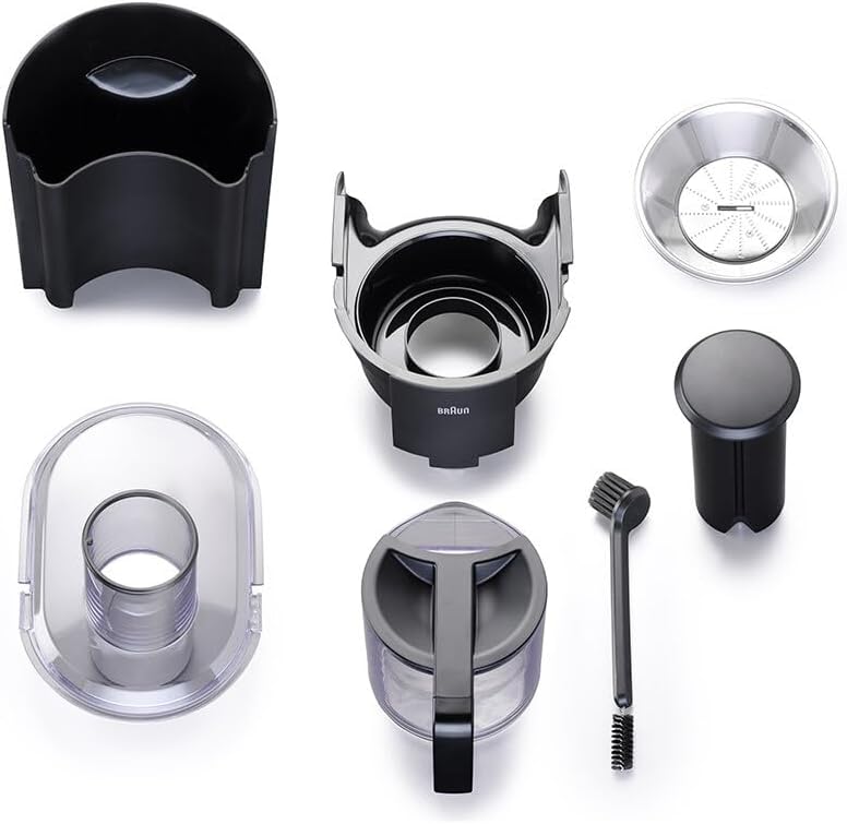 • Контейнер за сок с отделител за пяна, четка за почистване, място за съхранение на кабела
