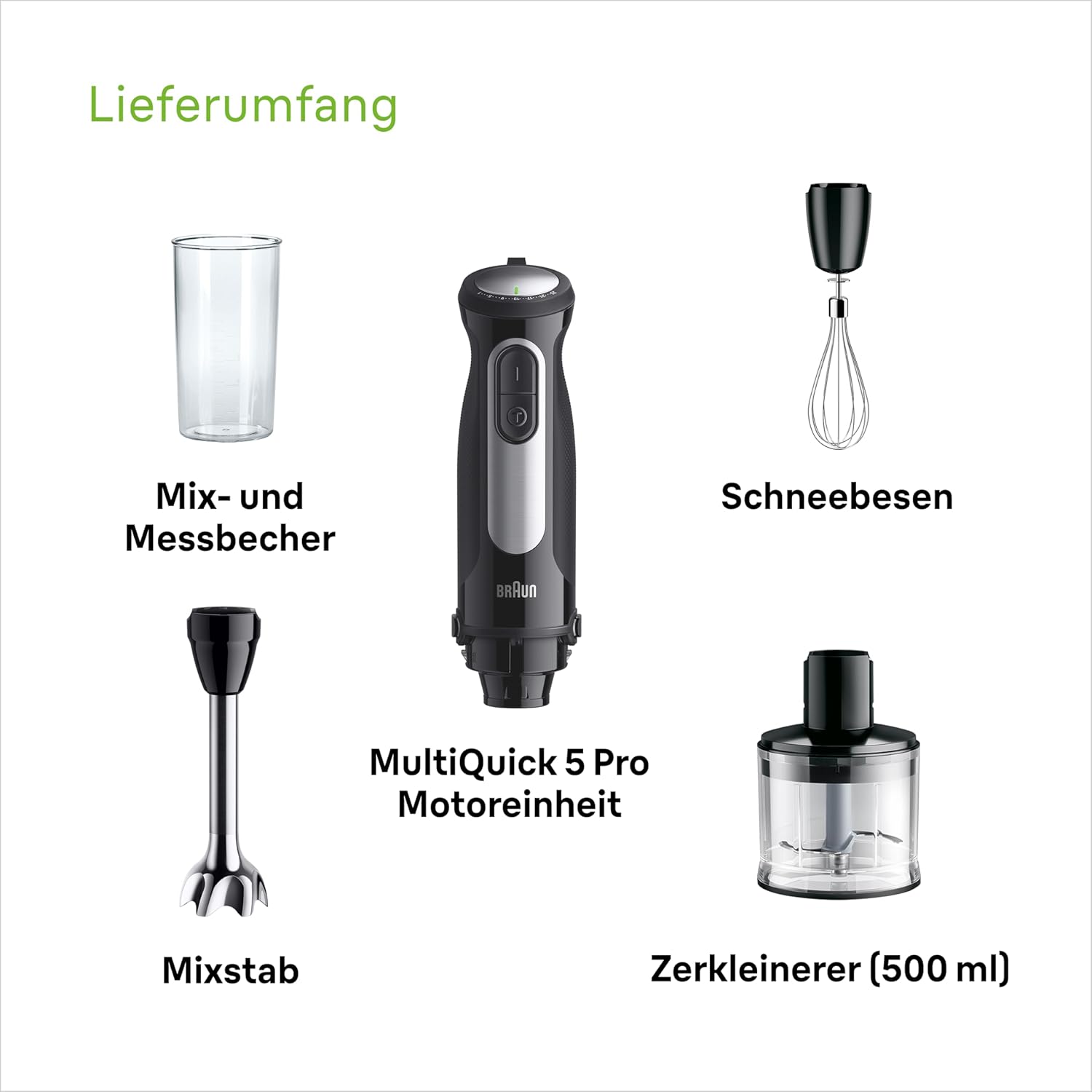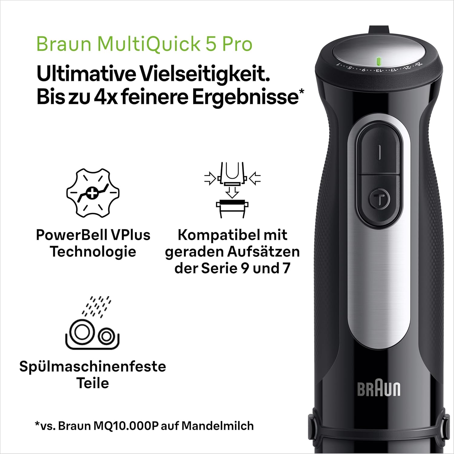 Braun MultiQuick 5 Pro MQ55236M Ръчен блендер - Електрически ръчен блендер с 25 скорости, система EasyClick Plus за аксесоари, комплект от 3 аксесоара, 1000 вата, черен
