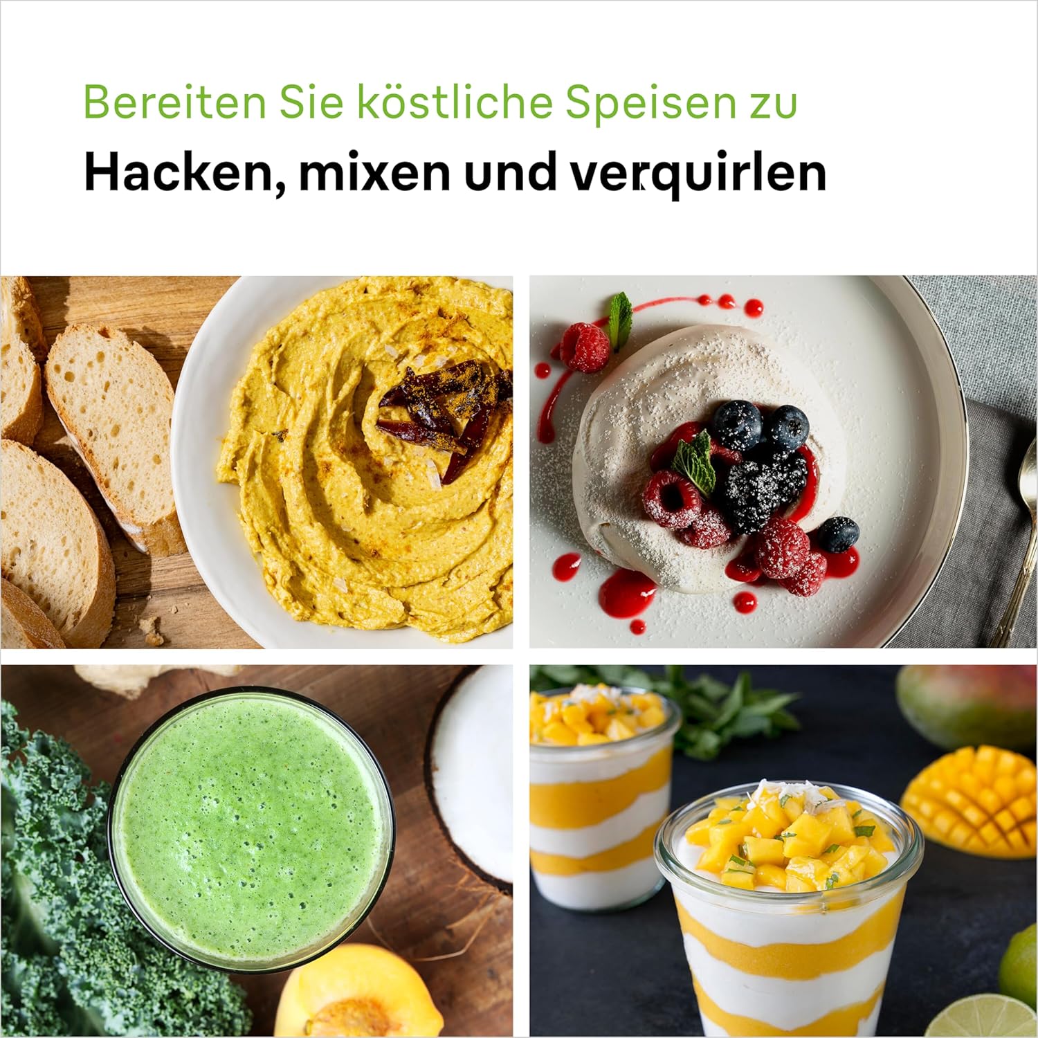 • Мощен и тих - 1000-ватов мотор осигурява мощна, тиха и компактна работа за перфектни резултати с всички ваши рецепти